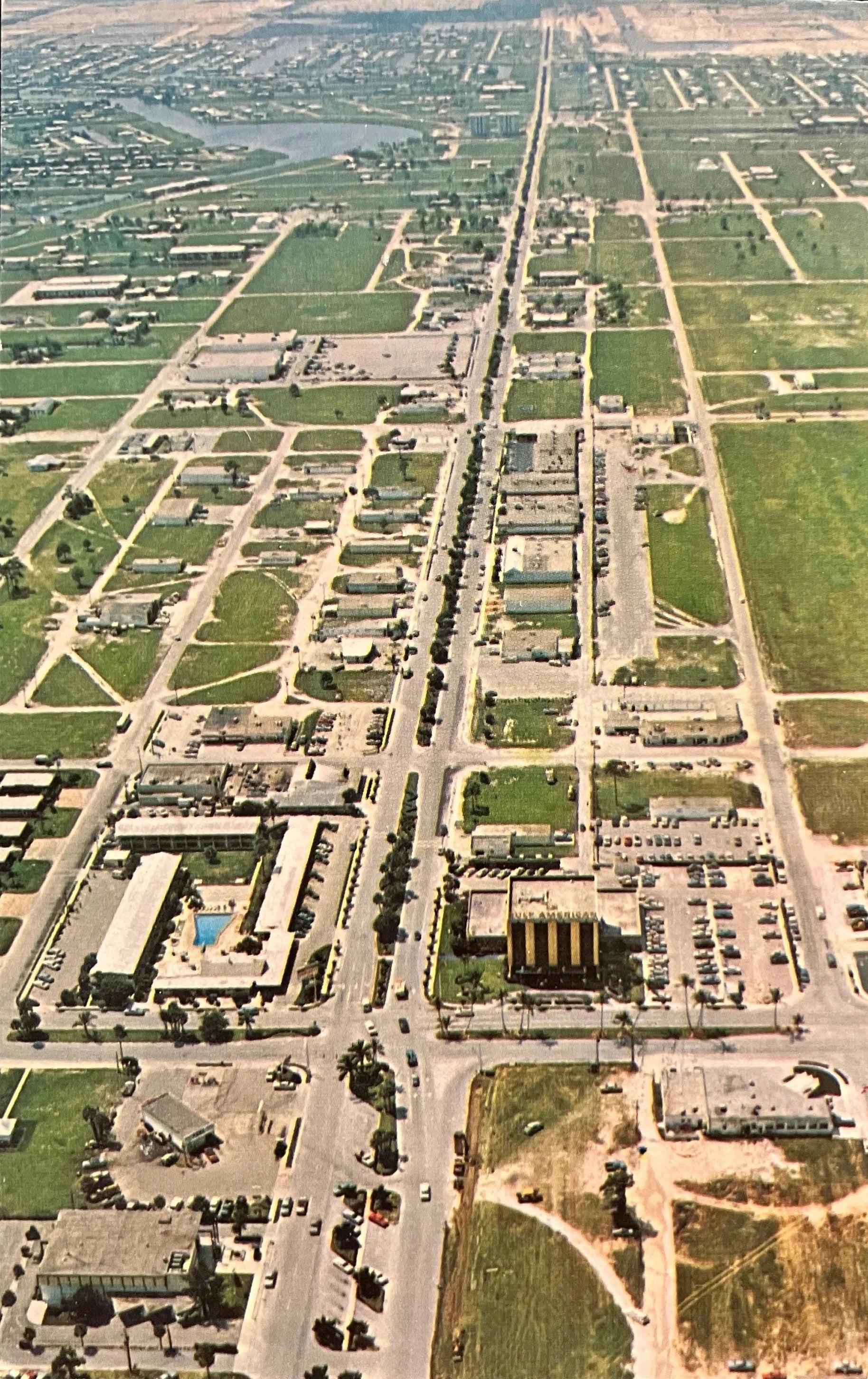 Back: Business District Cape Coral, Florida Cape Coral Bank, Gulf American Corp. Building and Nautilus-Congress Inn in foreground.