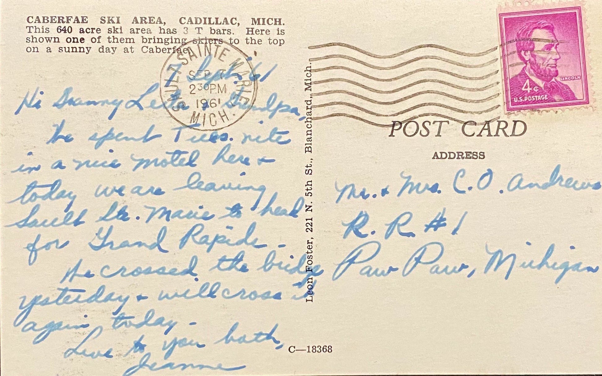 Caberfae Ski Area - Cadillac, Michigan - 1961 Postcard