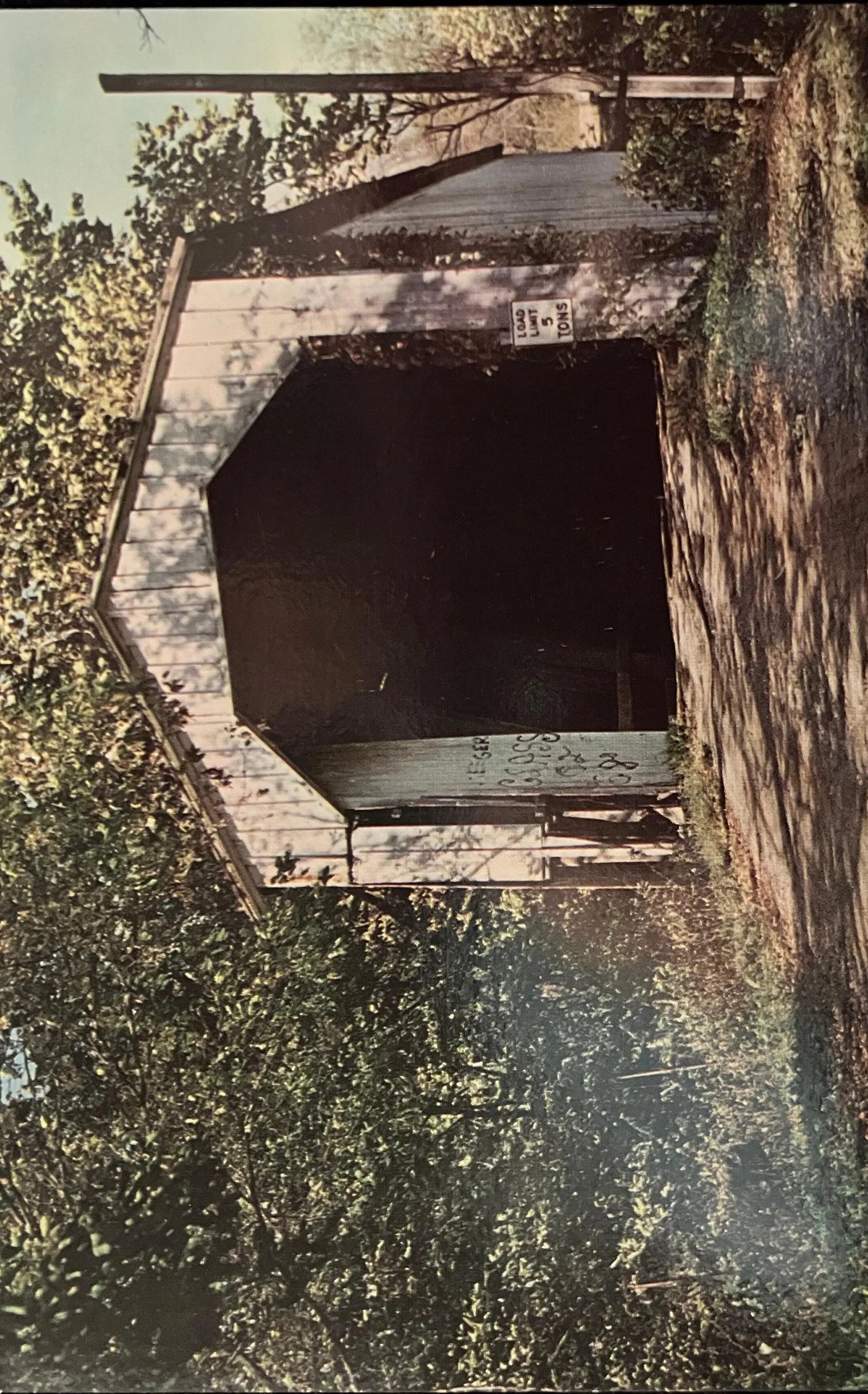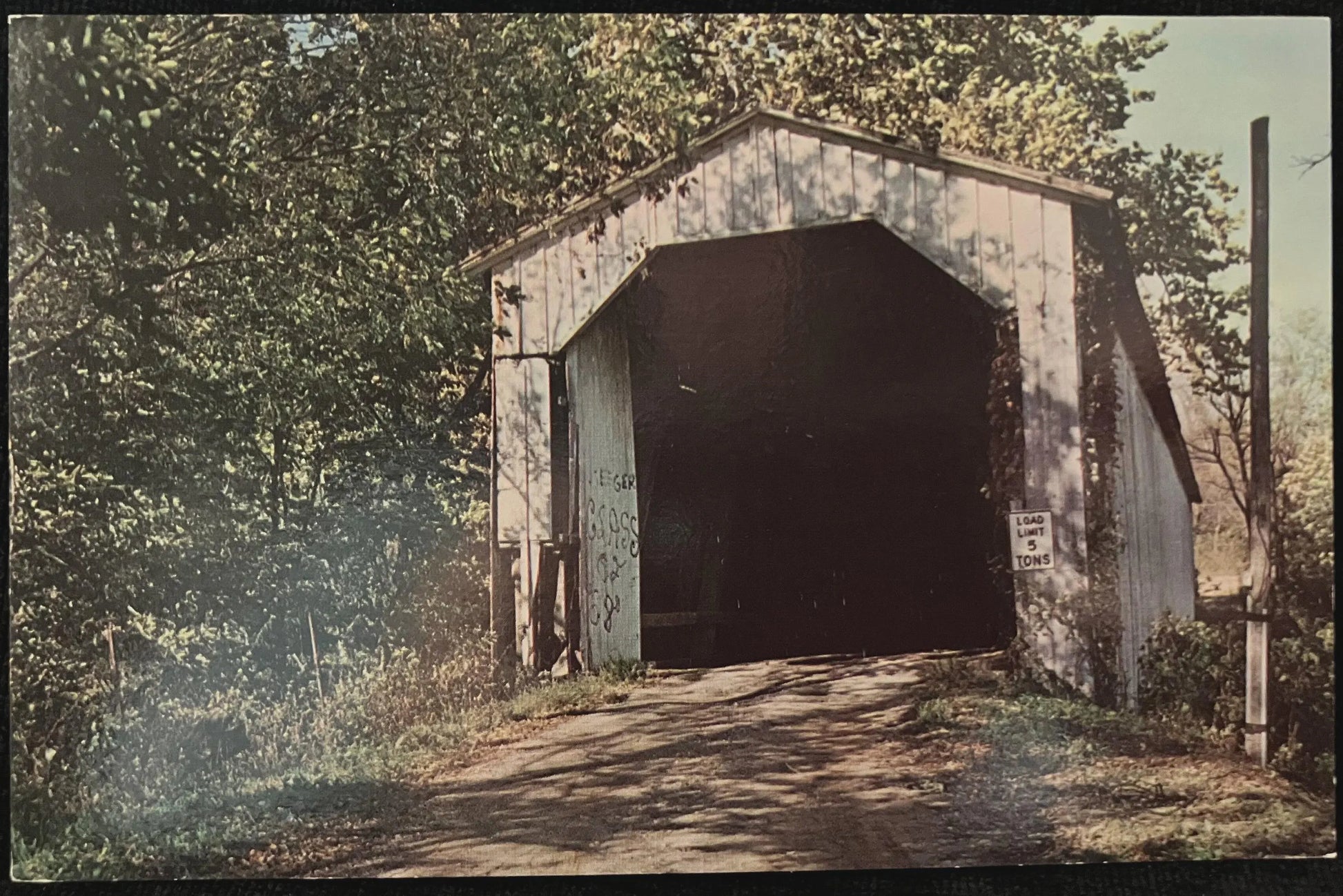 On front: A photo of Cade's Mill Bridge near Veedersburg, Indiana