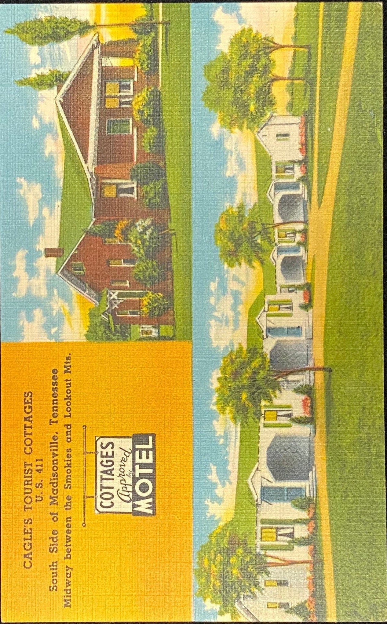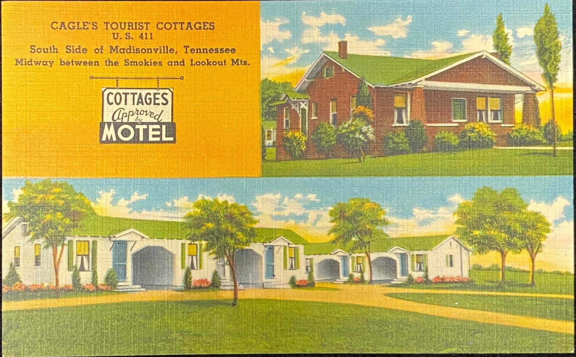 Front: Cagle's Tourist Cottages | US 411 | South side of Madisonville, Tennessee midway between Smokies and Lookout Mts.