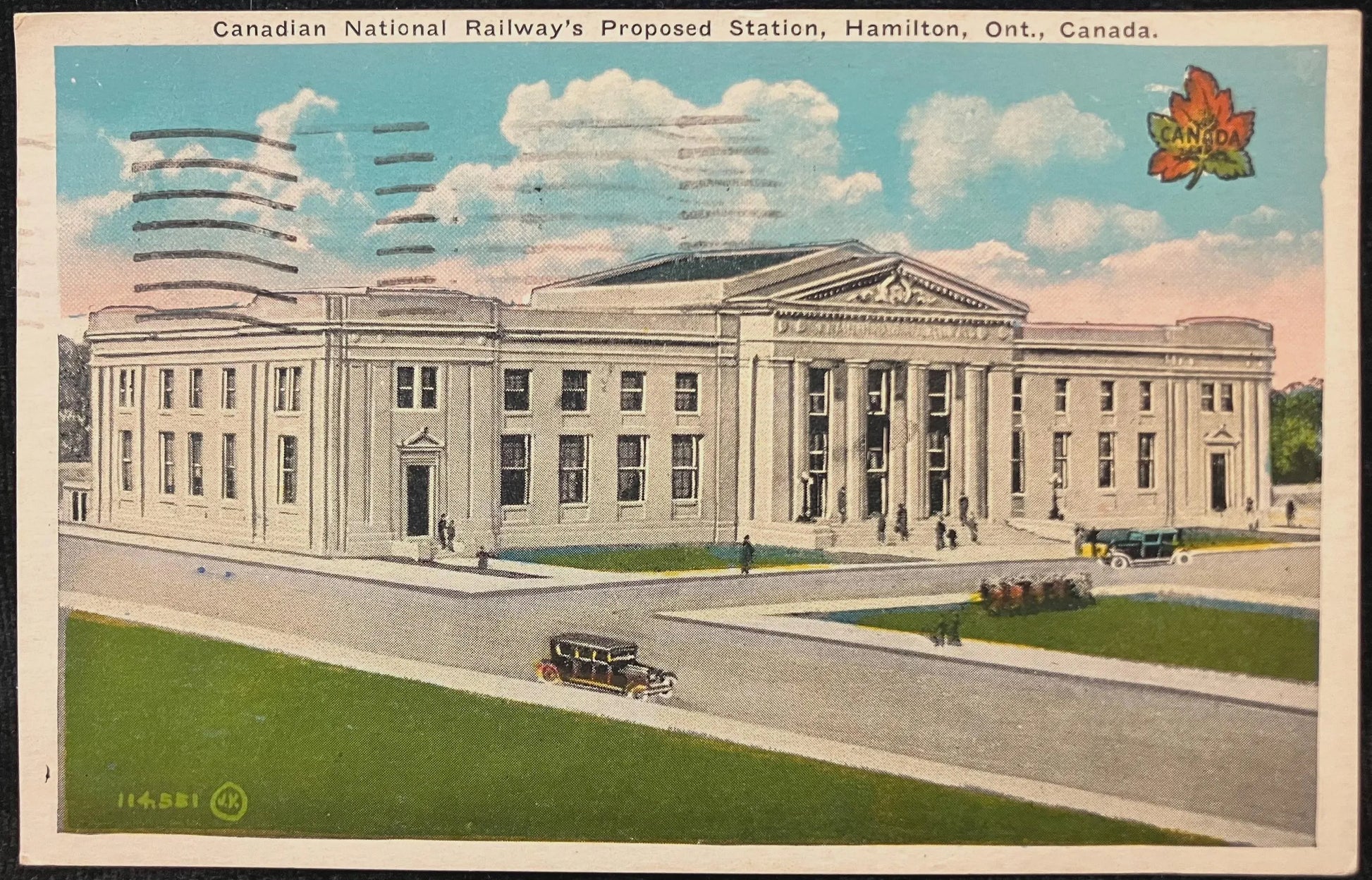 On front: Canadian National Railway’s Proposed Station, Hamilton, Ont., Canada.