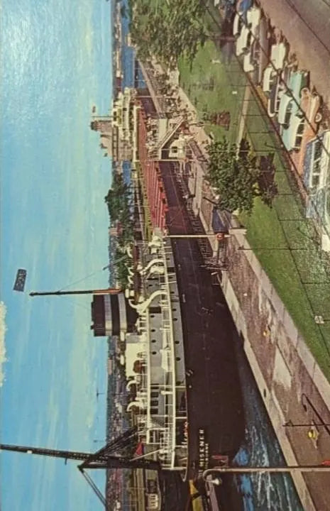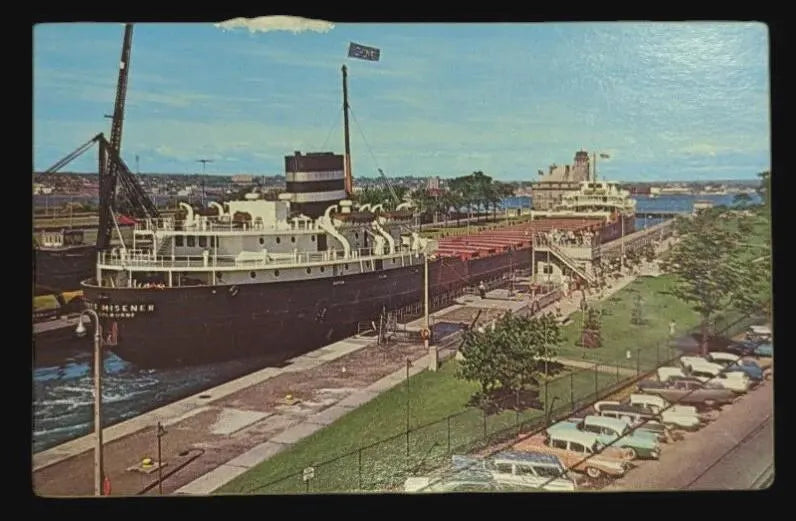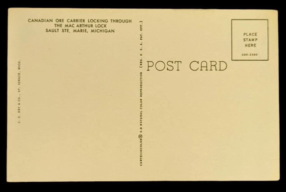 Canadian Ore Carrier - Mac Arthur Lock - Sault Ste. Marie, Michigan - Vintage Postcard