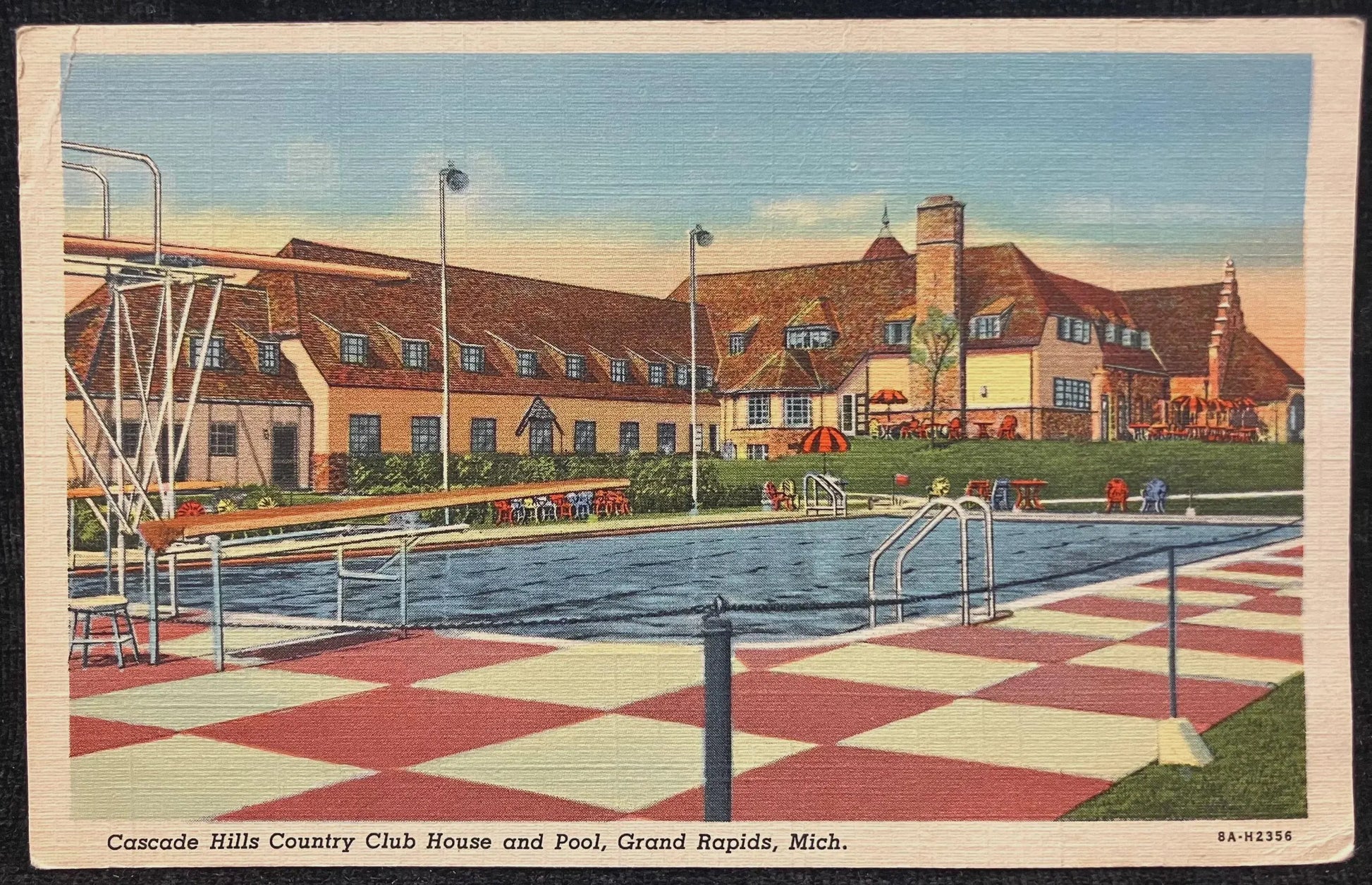 Cascade Hills Country Club House and Pool, Grand Rapids - Vintage Country Club Postcard