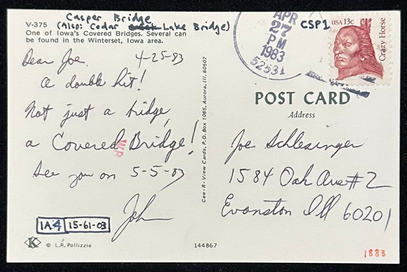 Casper Bridge - Cedar Lake Bridge, Iowa - Vintage 1983 Postcard