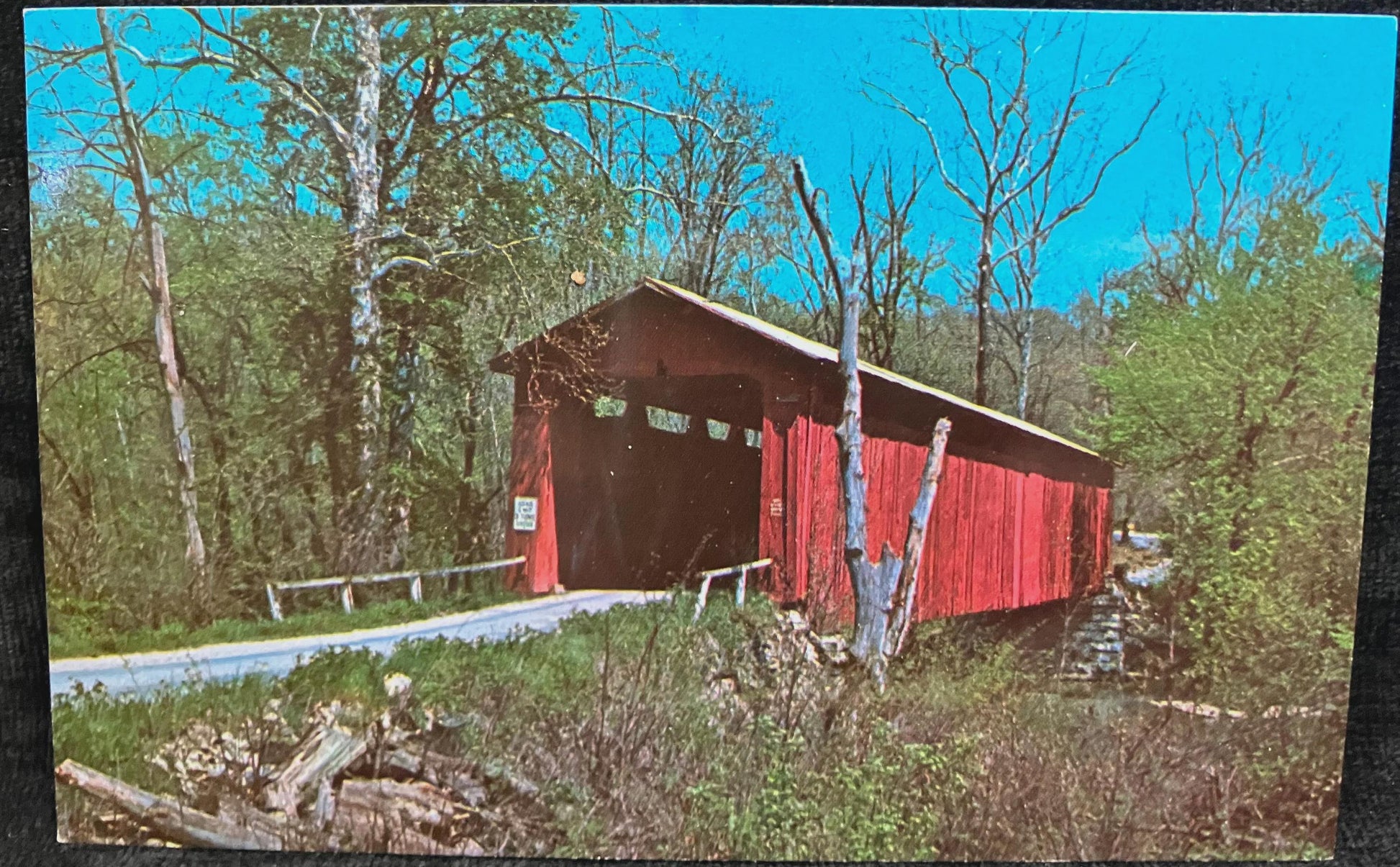 Cataract Bridge in Owen County, Indiana - Cataract Falls Bridge - Photo: Mitchell - Vintage Covered Bridge Postcard