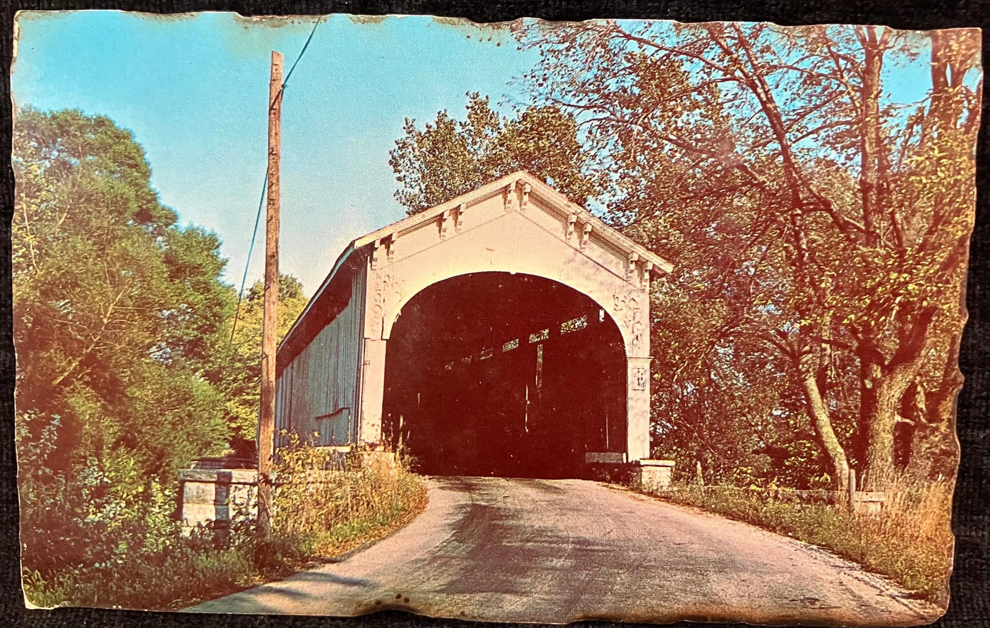 Cedar Ford Bridge in Shelbyville, Indiana - Vintage Covered Bridge Postcard