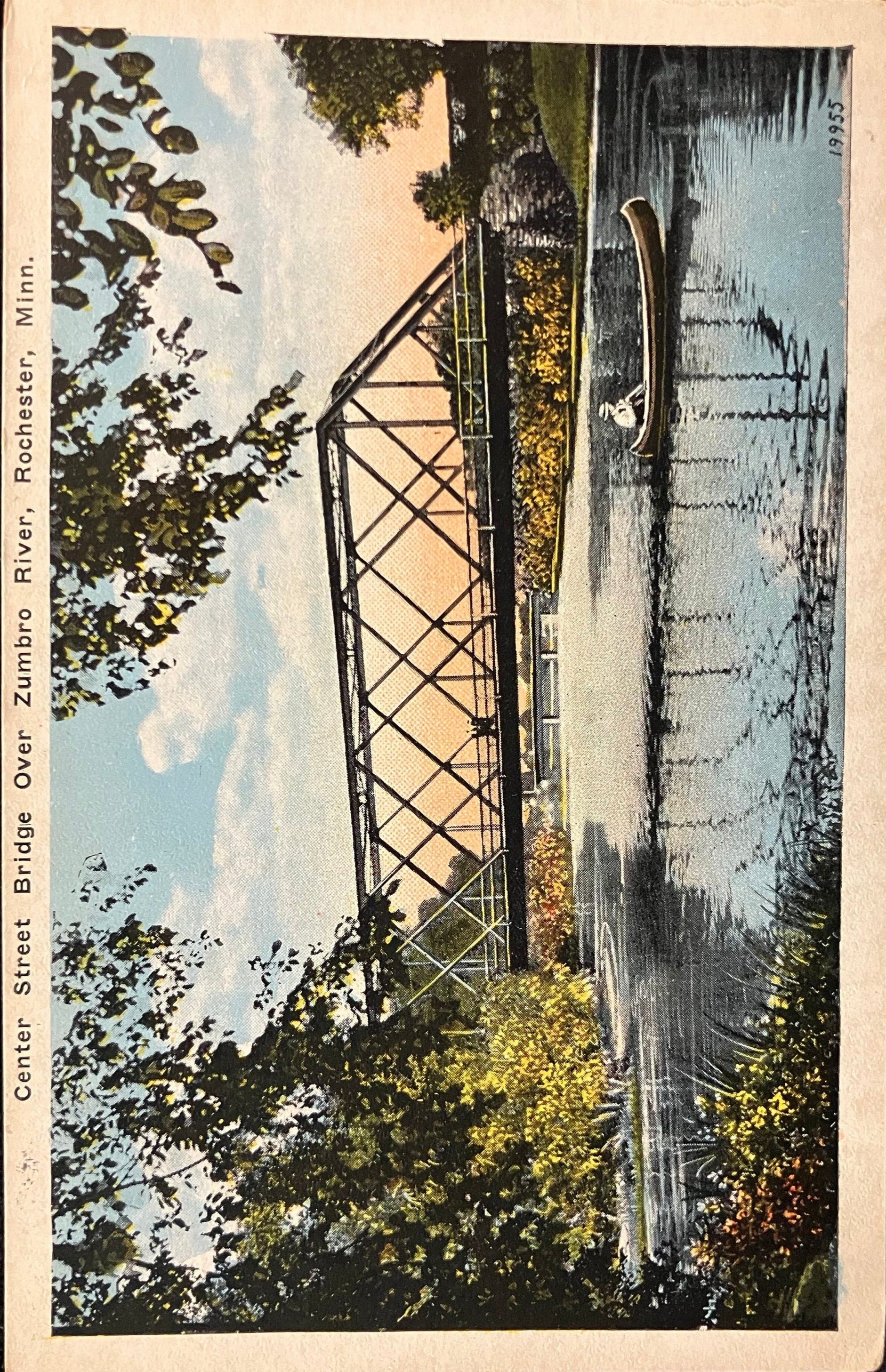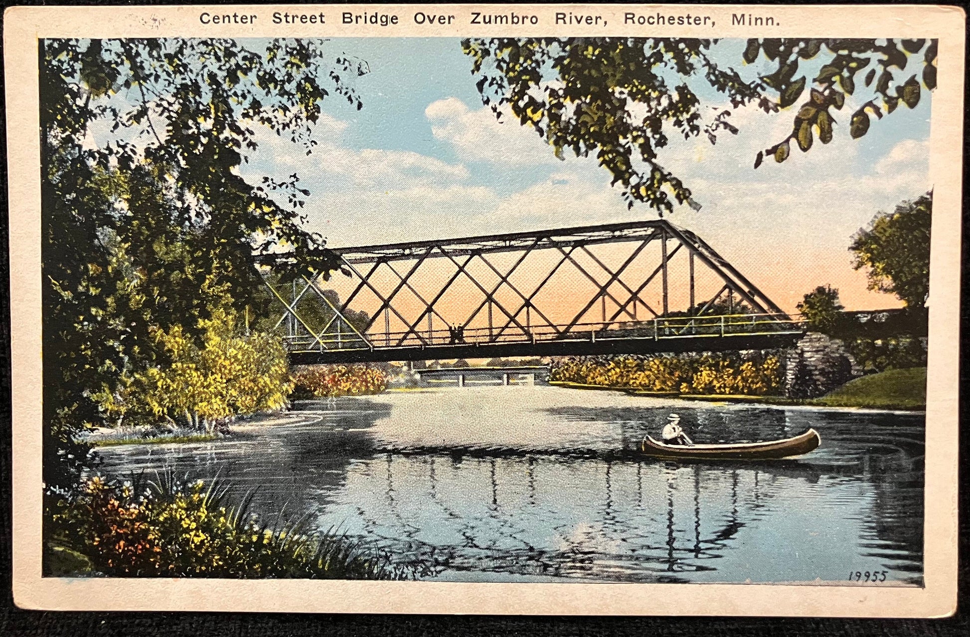 Center Street Bridge Over Zumbro River, Rochester, Minn. - Vintage Bridge Postcard - Canoeing in 1910 on the Zumbro River