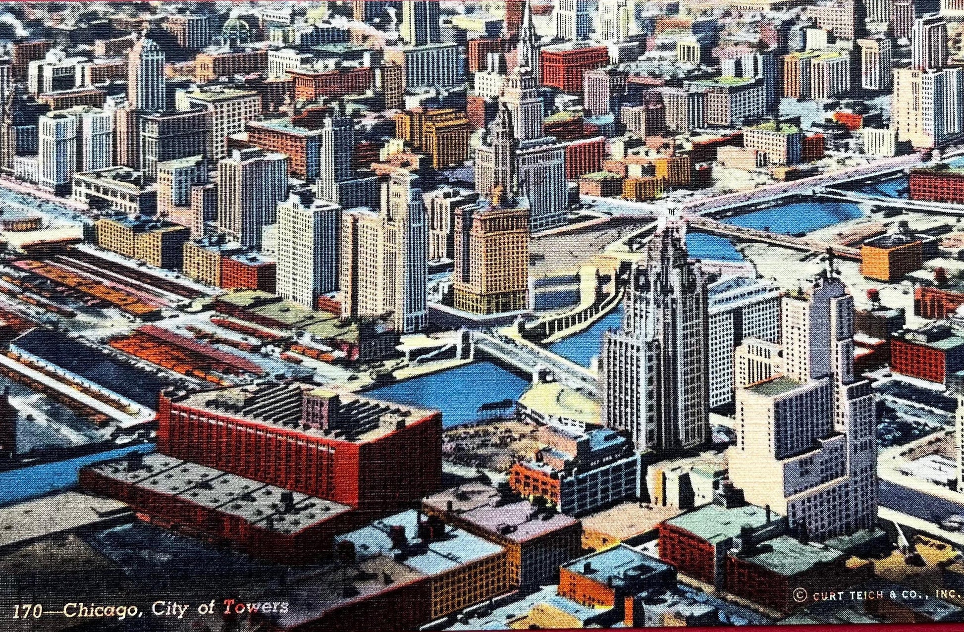 Chicago, Illinois - City of Towers - 1942 Linen Postcard