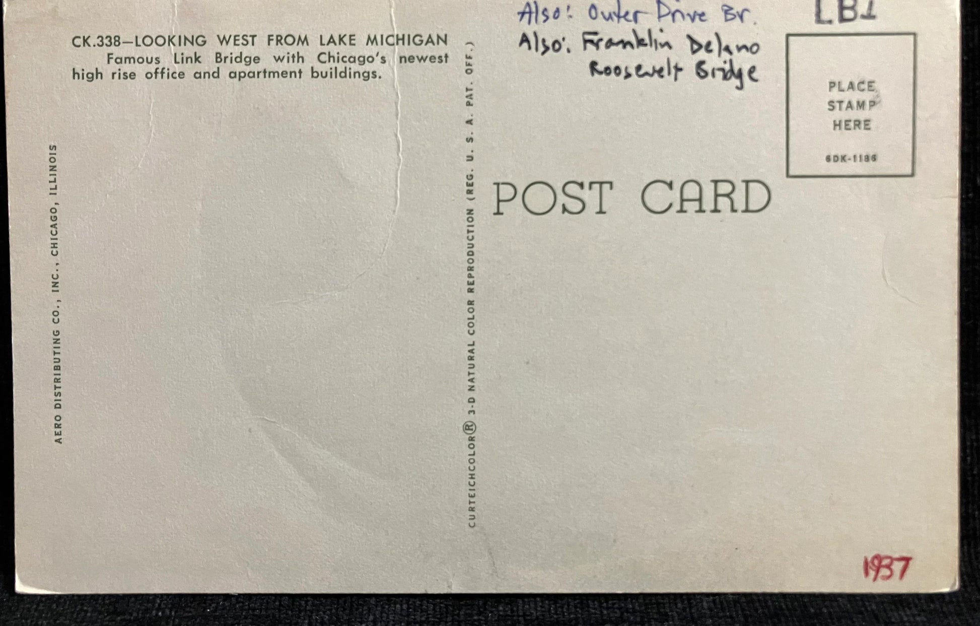 Written: “Also: Outer Drive Br. Also: Franklin Delano Roosevelt Bridge” 1937