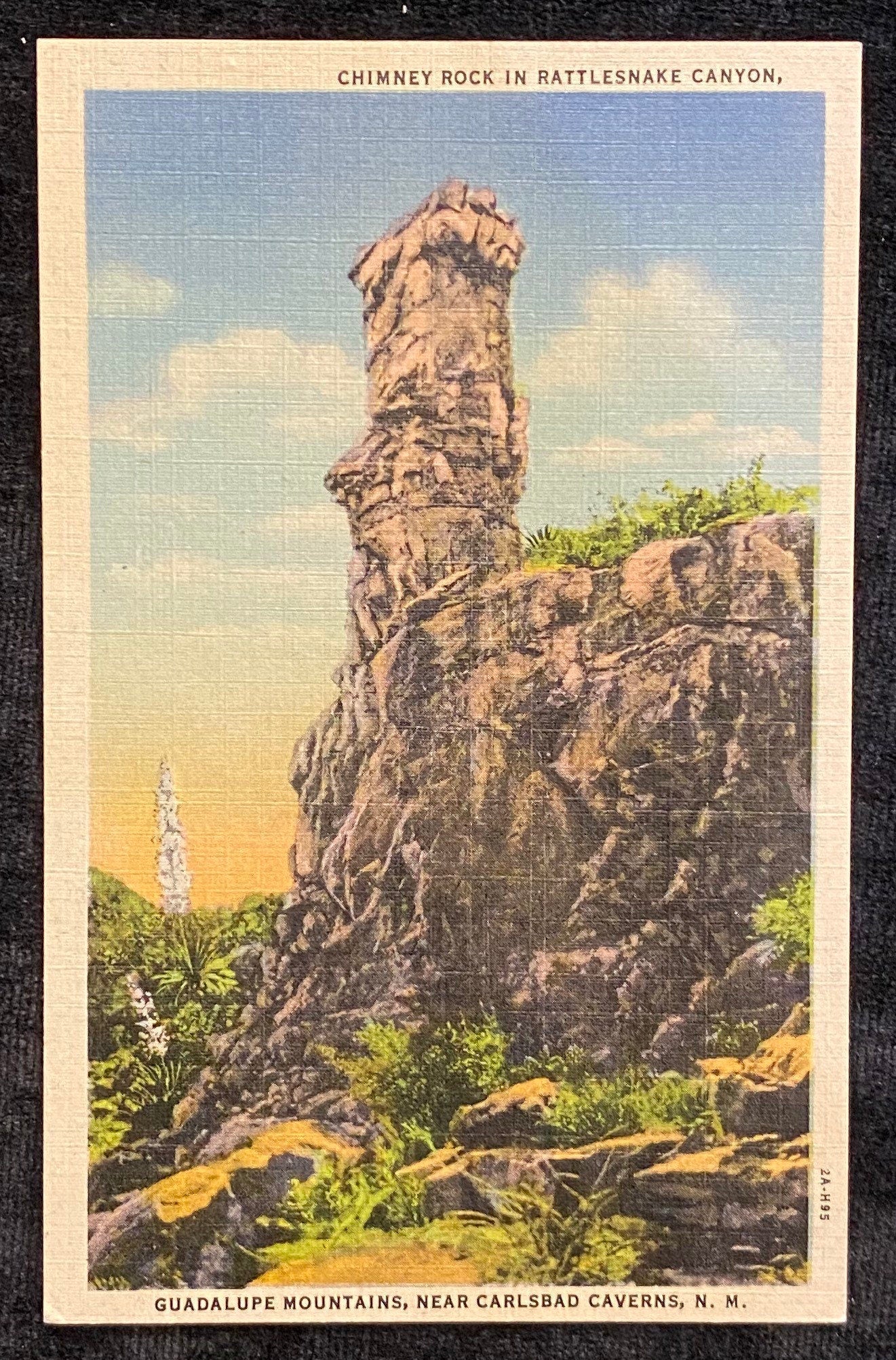 Chimney Rock in Rattlesnake Canyon, Guadalupe Mountains, Near Carlsbad Caverns, N.M. - 1932 Linen Postcard