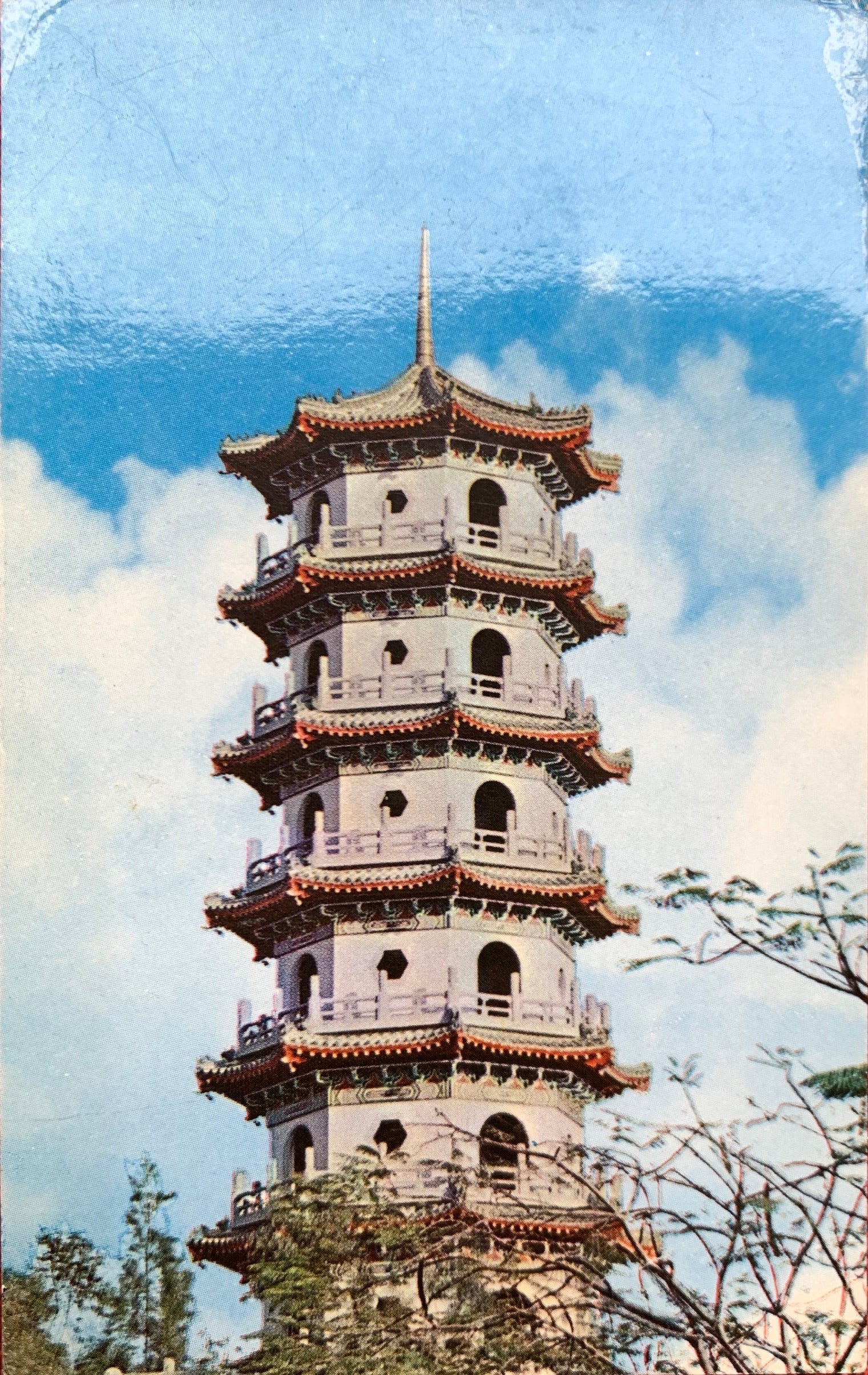 This postcard features a photograph of Chung-Hsing Pagoda in Taiwan.