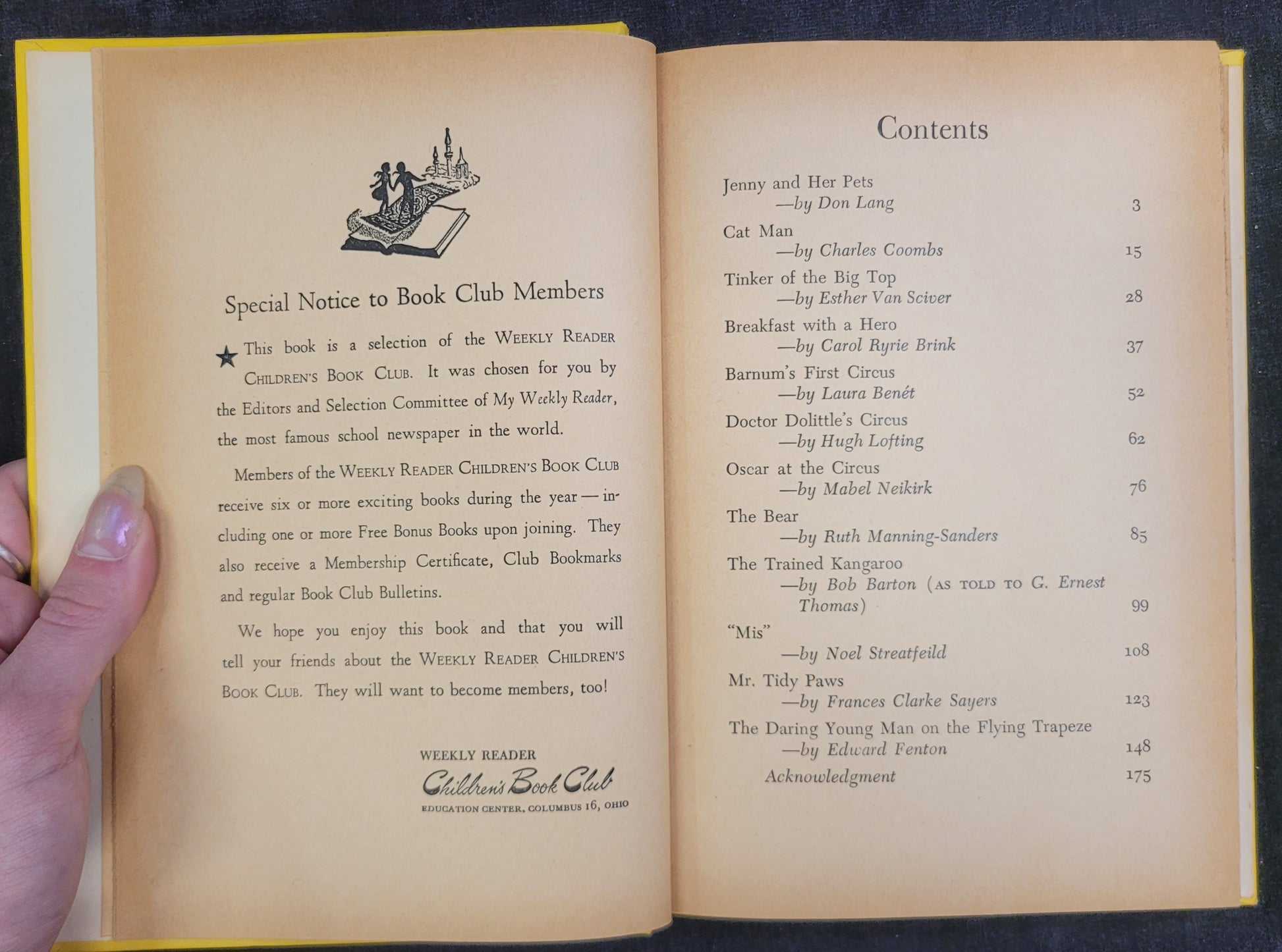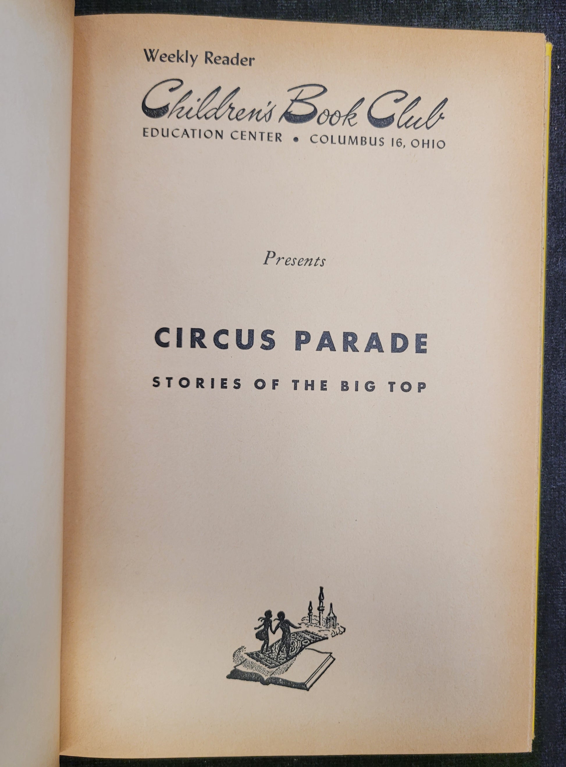 This collection of short stories illustrated by Lee Ames was a selection from the Weekly Readers Children's Book Club. Each selection tells a different story about circus animals, performers and sideshows.