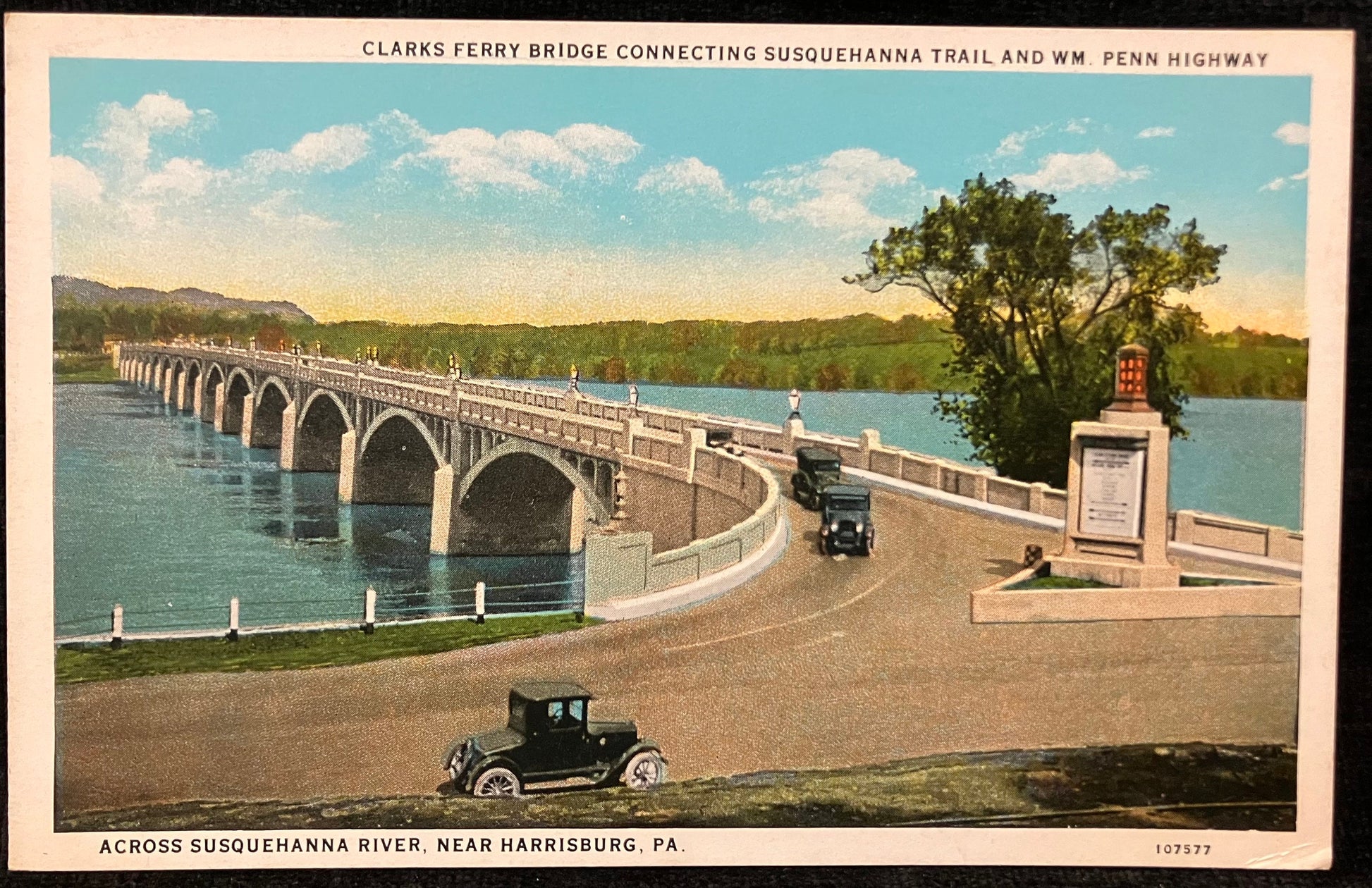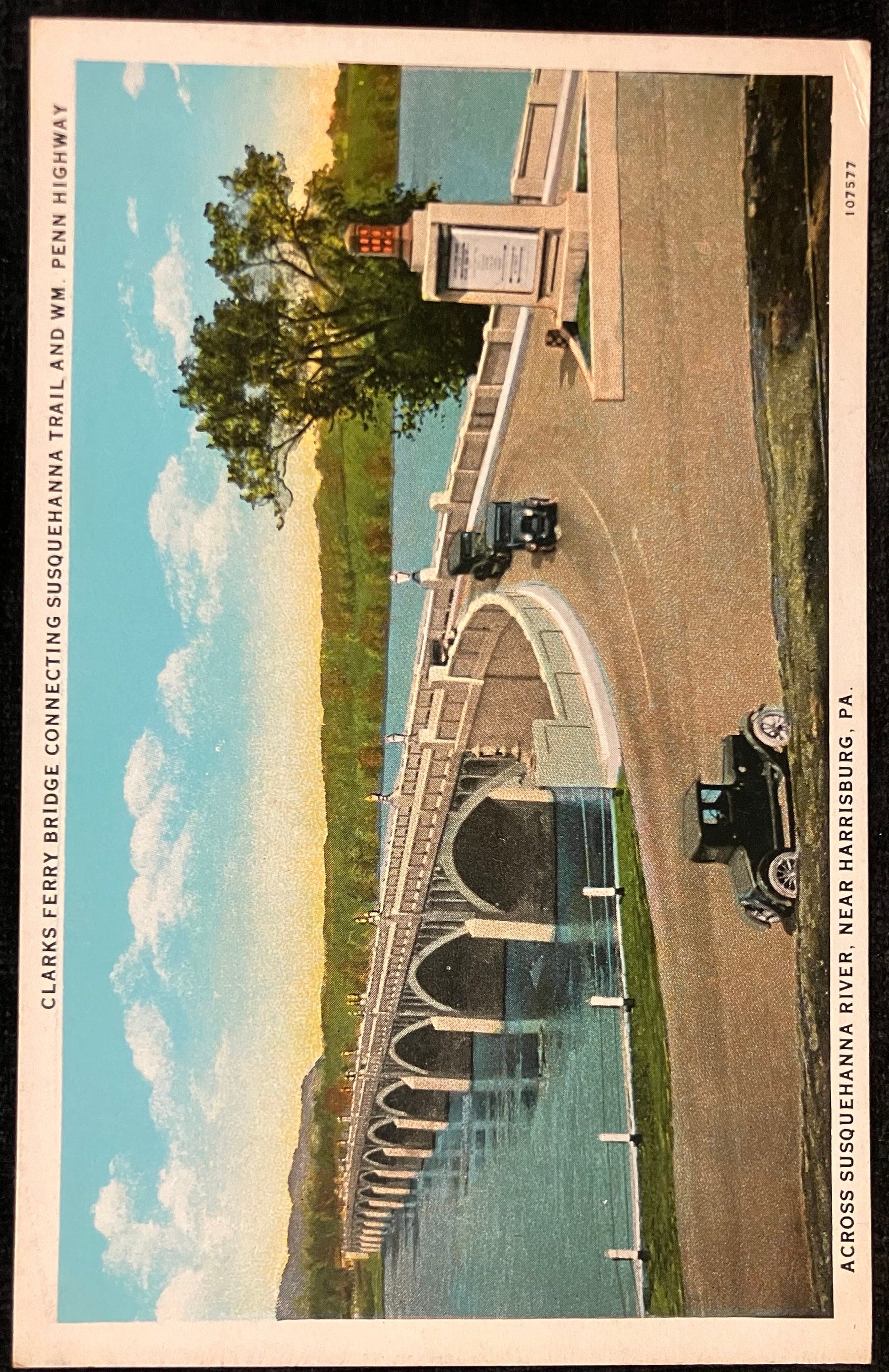 Front: Clarks Ferry Bridge Connecting Susquehanna Trail and Wm. Penn Highway Across Susquehanna River, Near Harrisburg, PA.