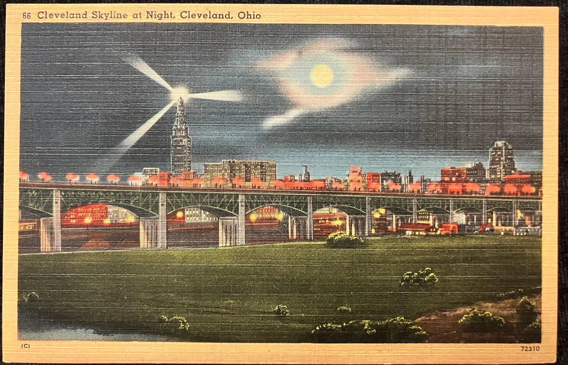 Cleveland Skyline at Night, Cleveland, Ohio - Vintage Postcard