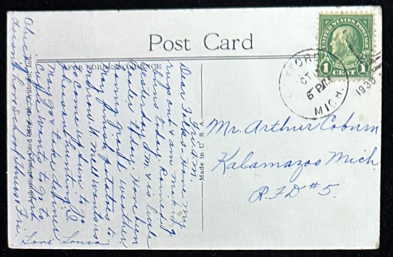 Mailed: Posted on October 1938 from Oxford, Michigan with a green 1 cent Ben Franklin stamp
