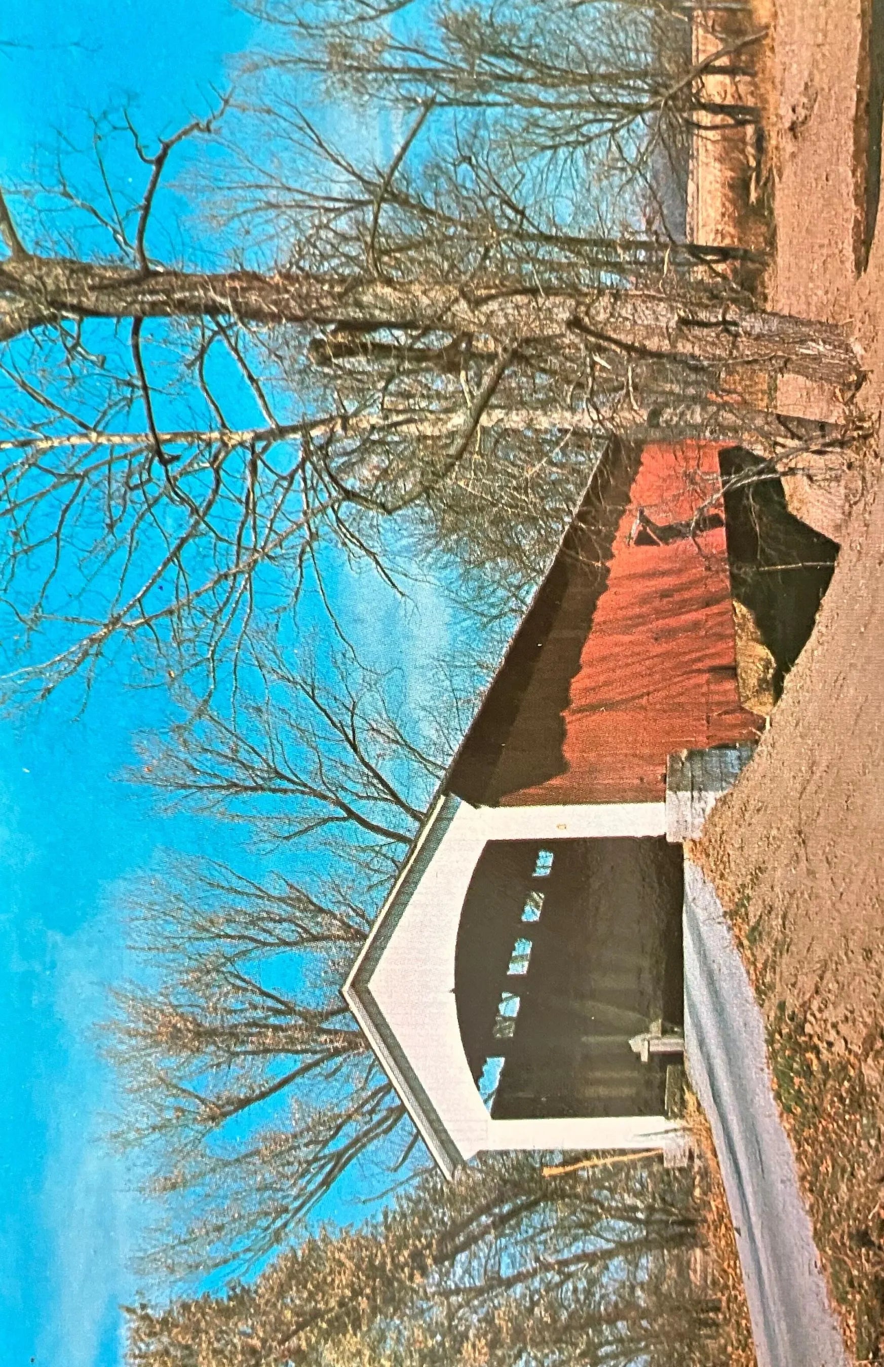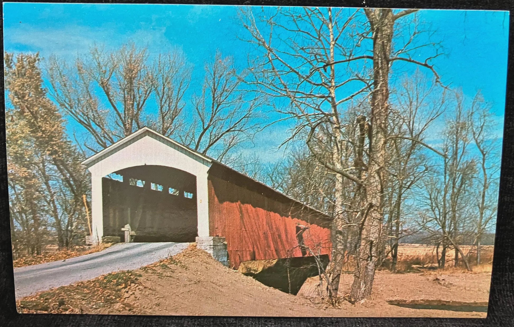 Conley’s Ford Bridge over Big Raccoon Creek near Bridgeton, Indiana - Photo: Mitchell - Vintage Covered Bridge Postcard