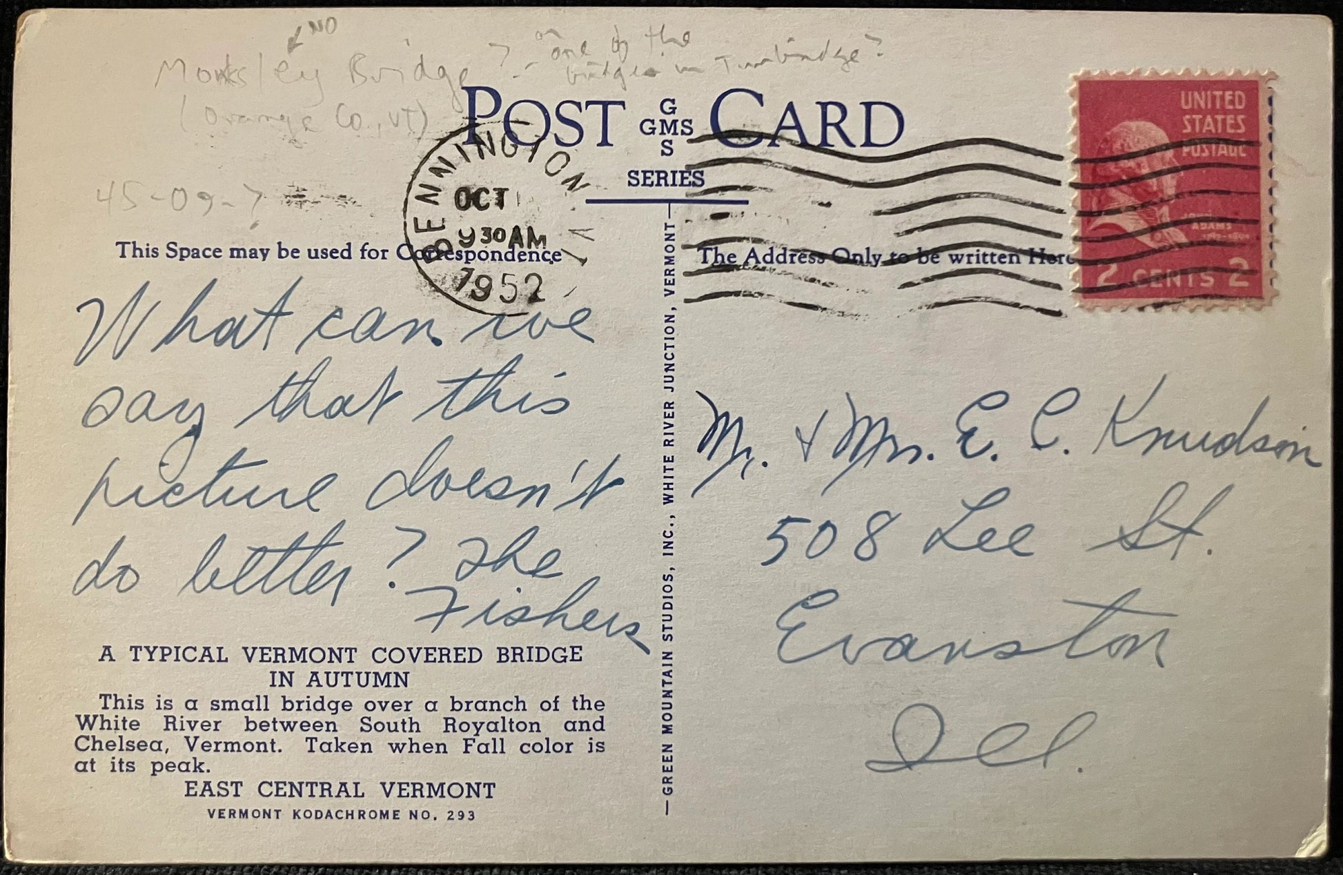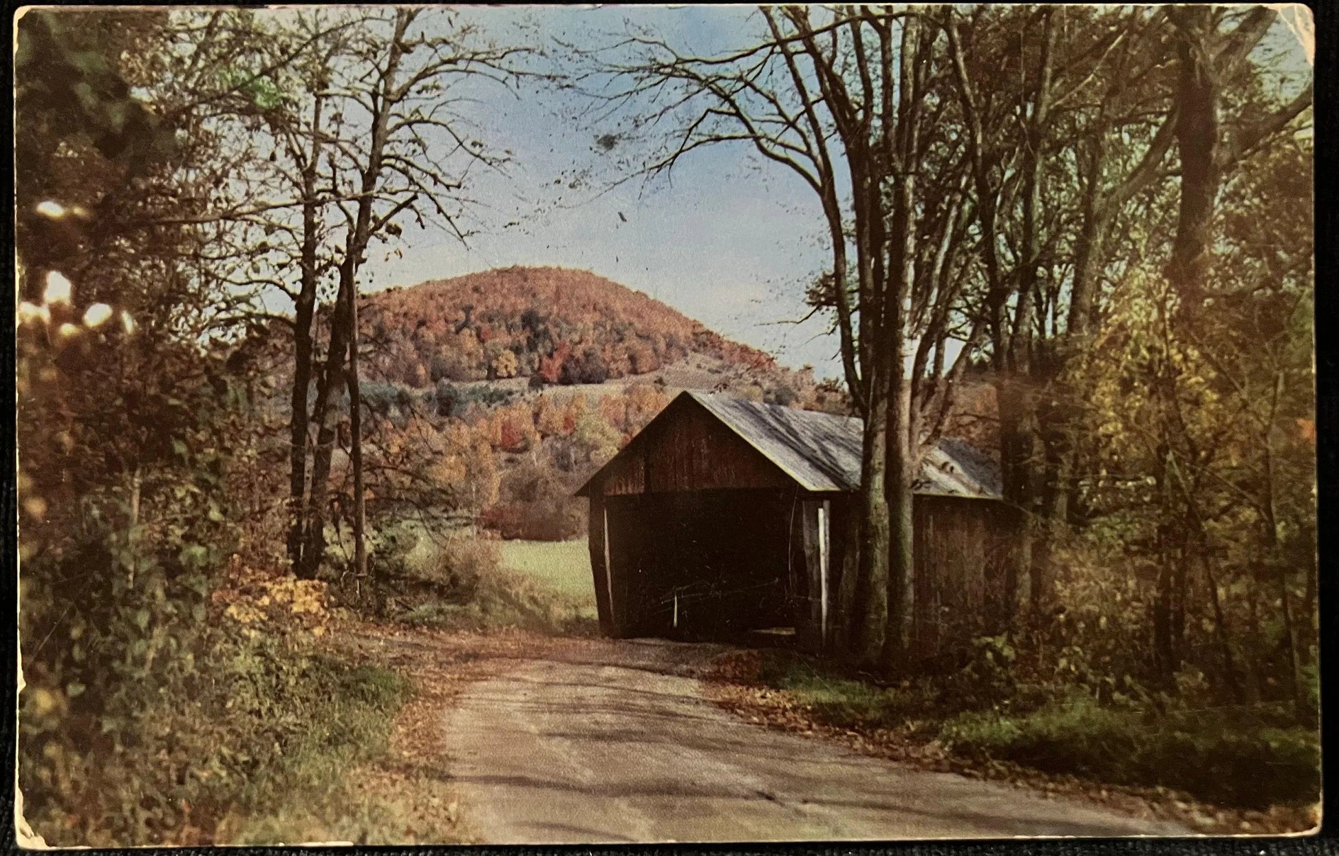 Covered Bridge in Autumn, Chelsea, Vermont - Vintage 1950s Bridge Postcard