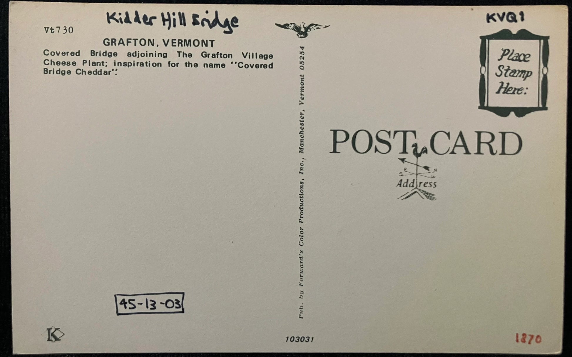 Front: Photo of a Covered Bridge in Grafton, Vermont