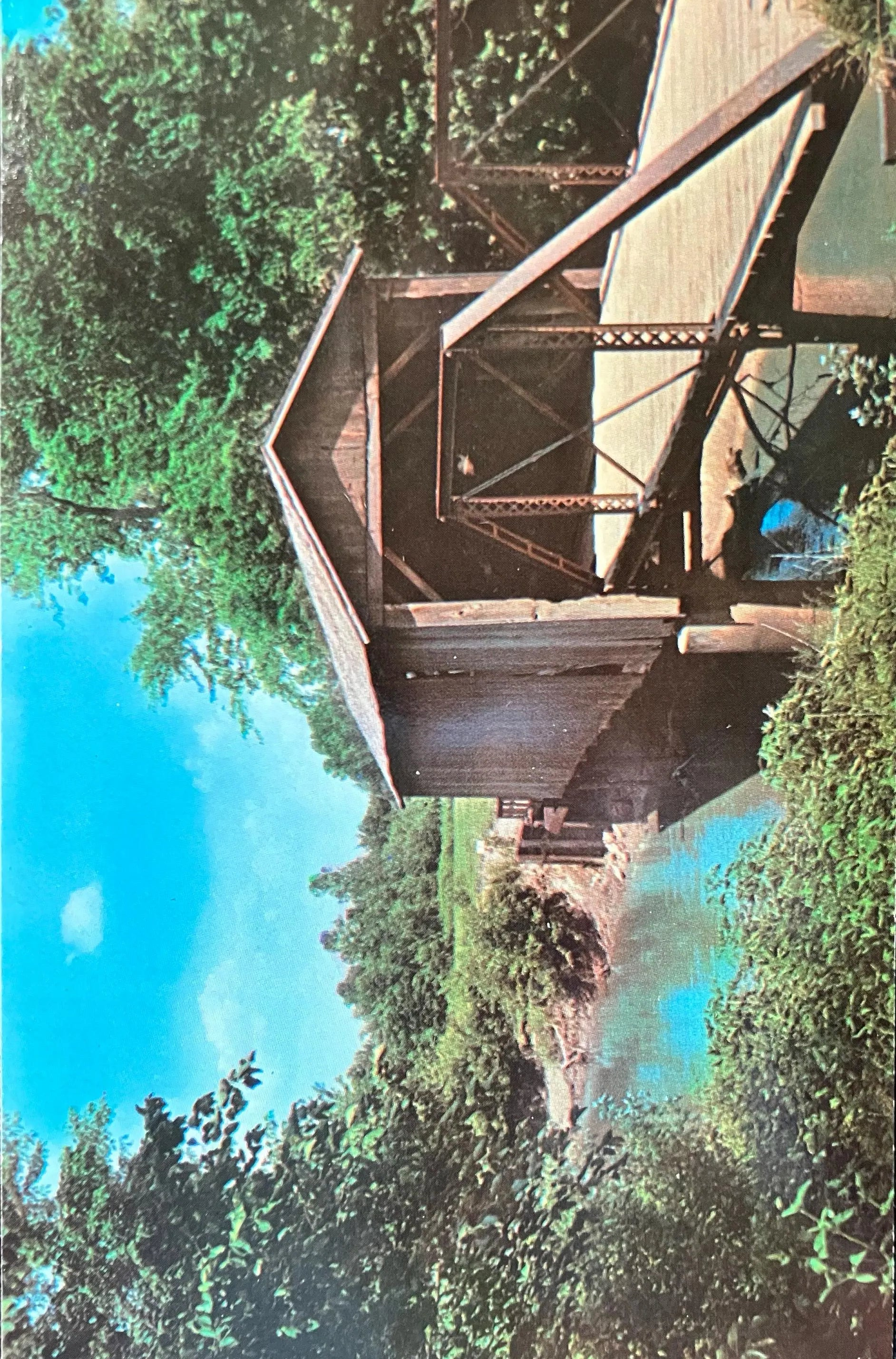 On back: These picturesque structures, often referred to as “Kissing Bridges”, may be found on several of the country roads through Iowa’s scenic valleys.