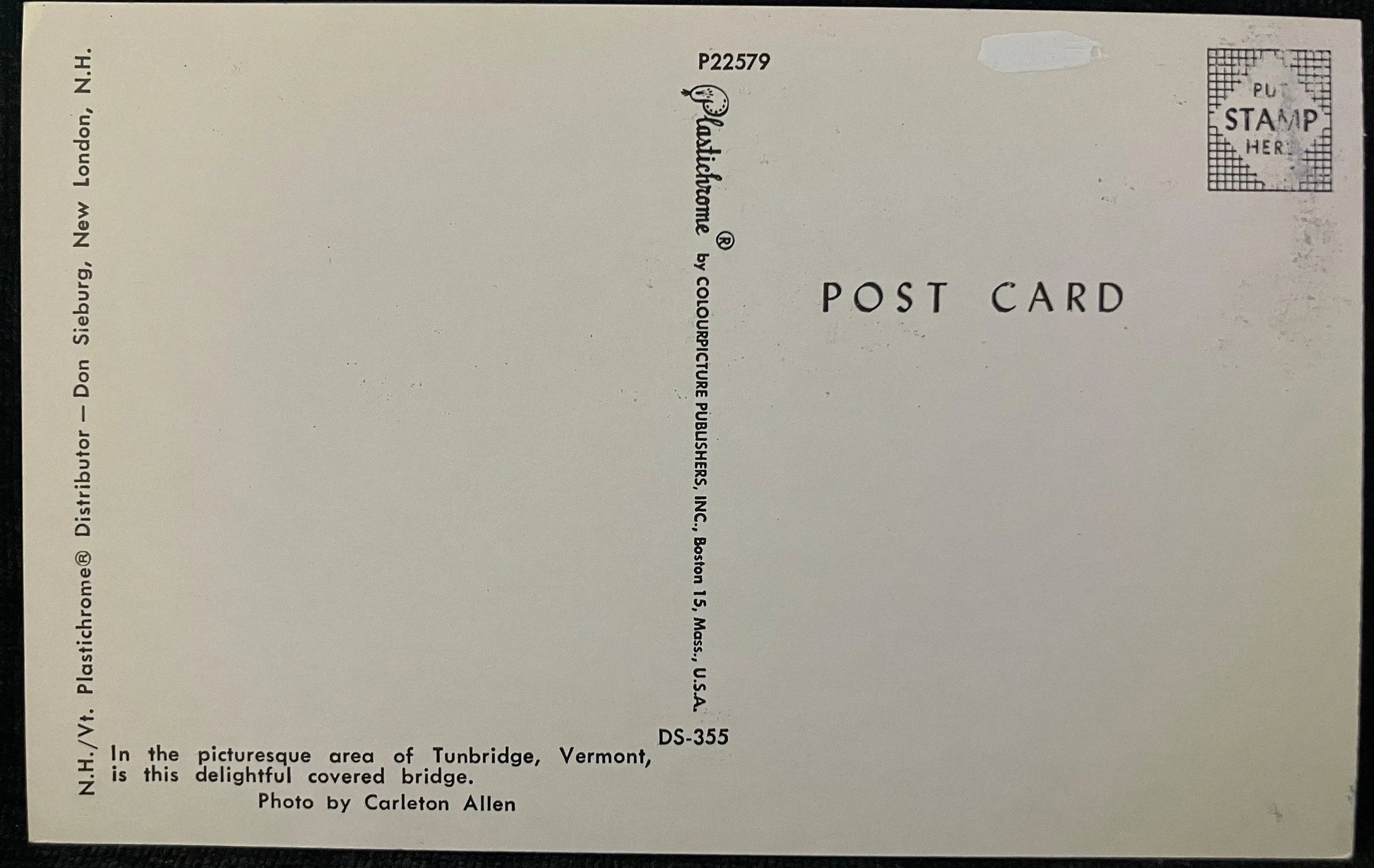 Covered Bridge in Tunbridge, Vermont - Photo by Carleton Allen - Vintage Bridge Postcard