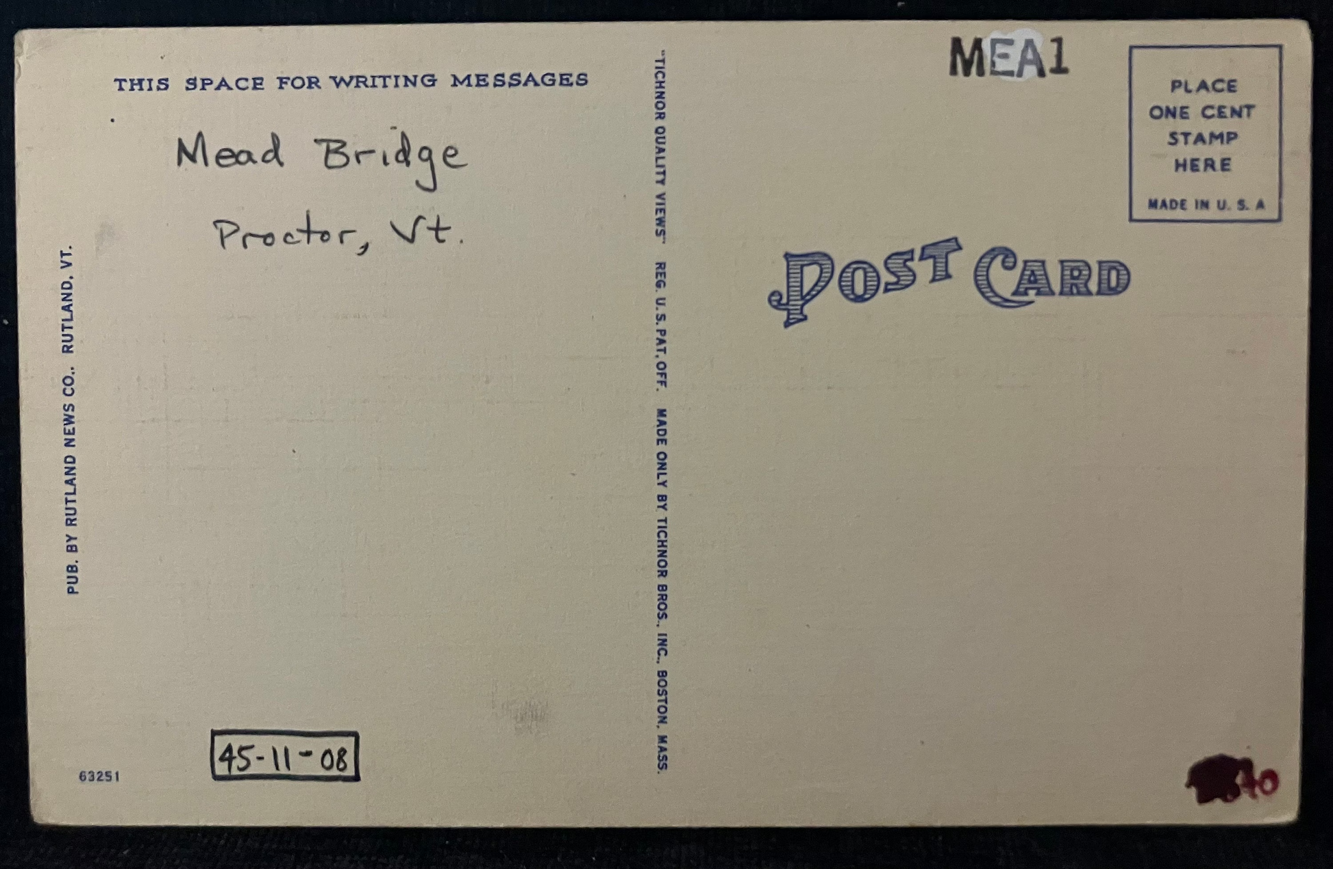 Front: Covered Bridge. Near Rutland, Vermont