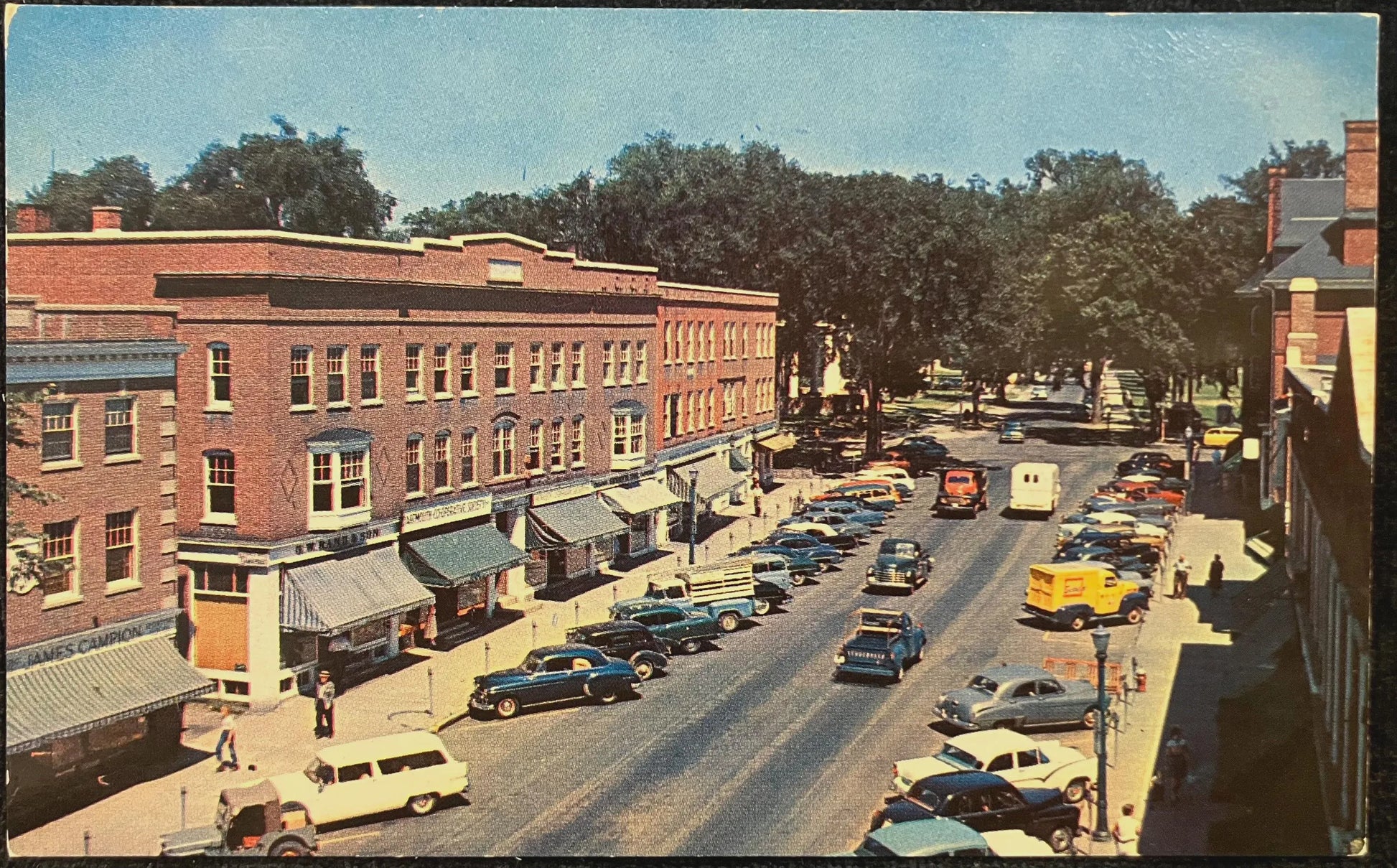 Back: Hanover and Dartmouth College are an ideal combination of a fine New Hampshire town and a strong New Hampshire college. Shown here is the pleasant Main Street with its business section.