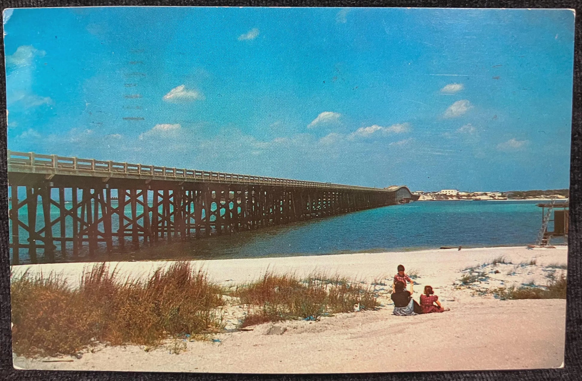Back: Destin Bridge, Highway 98, Destin, Florida, a fisherman’s Paradise on the Gulf of Mexico.