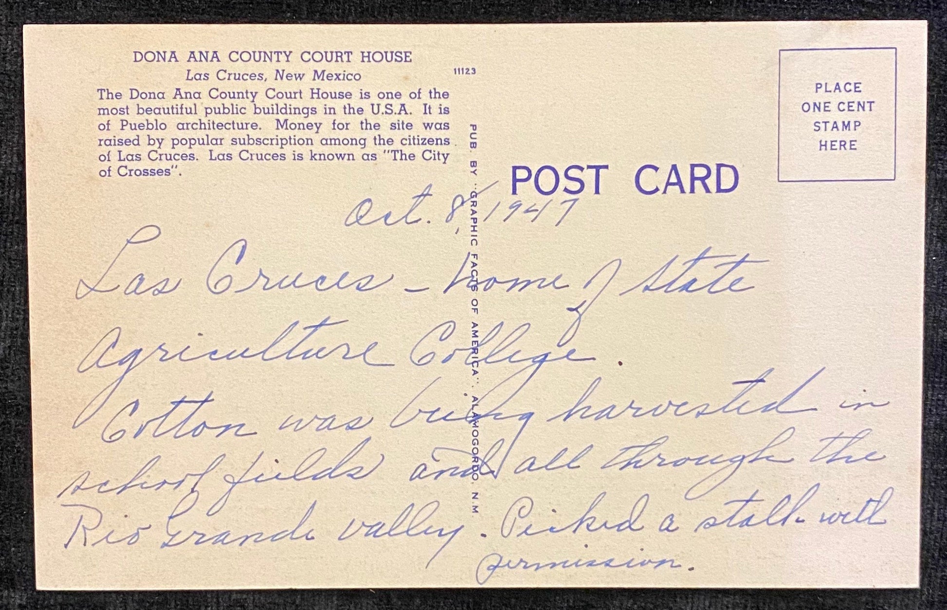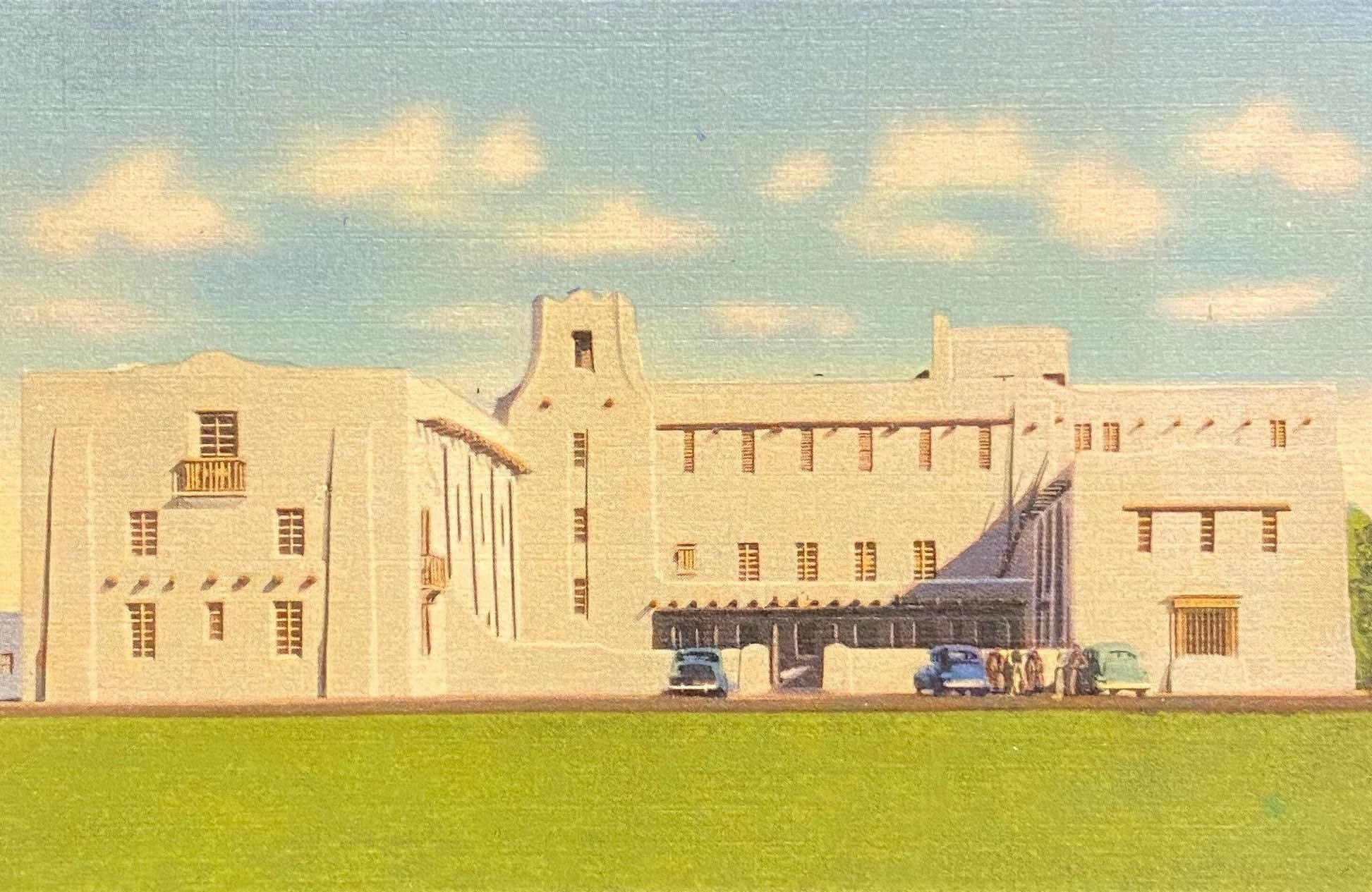 Dona Ana County Court House, Las Cruces, New Mexico | "The Dona Ana County Court House is one of the most beautiful public buildings in the U.S.A. It is of Pueblo architecture. Money for the site was raised by popular subscription among the citizens of Las Cruces. Las Cruces is known as 'The City of Crosses.'"