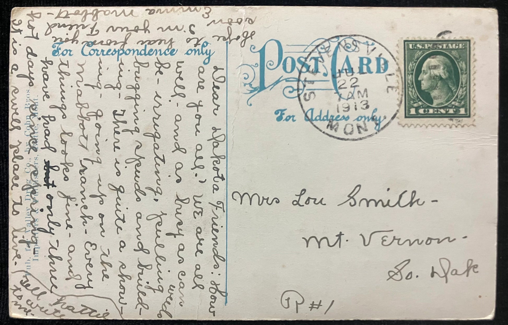 Mailed: Postmark on Jul 22, 1913 from Stevensville, Montana with a green one cent George Washington stamp