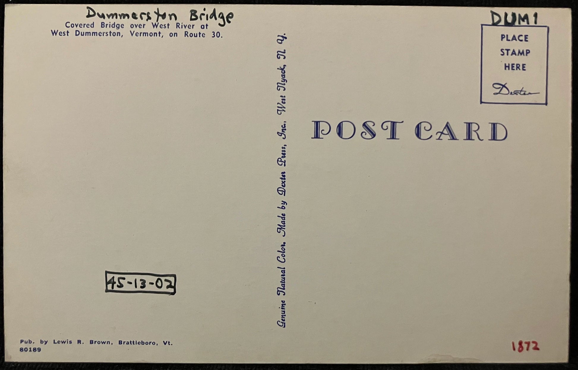 Dummerston Bridge - West Dummerston, Vermont - Vintage Bridge Postcard