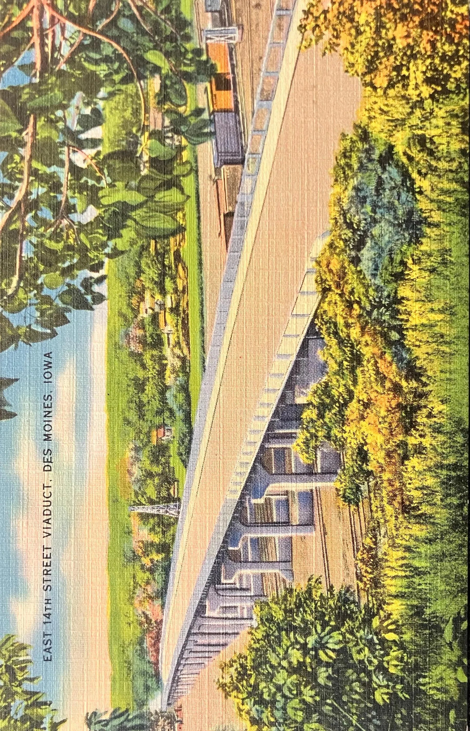 On front: East 14th Street Viaduct, Des Moines, Iowa