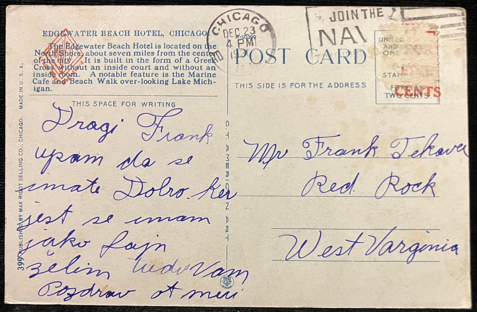 Mailed: Postmark on December 23, 1920 from Chicago, Illinois