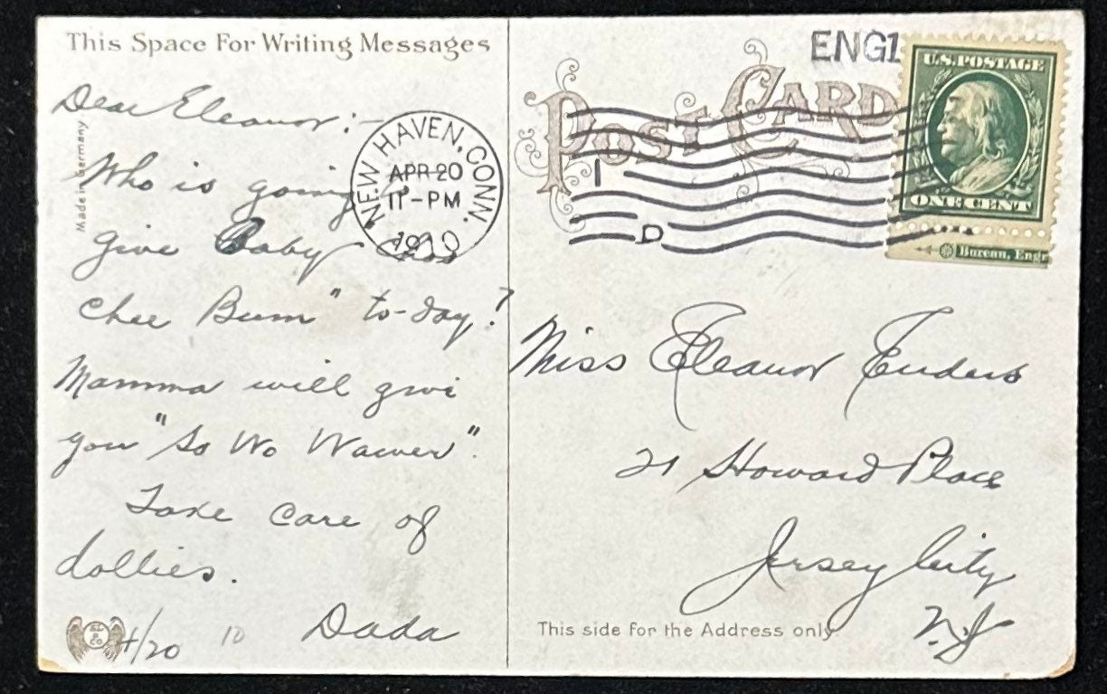 Mailed: Posted on April 20, 1910 from New Heaven, Connecticut with a green 1 cent Benjamin Franklin stamp