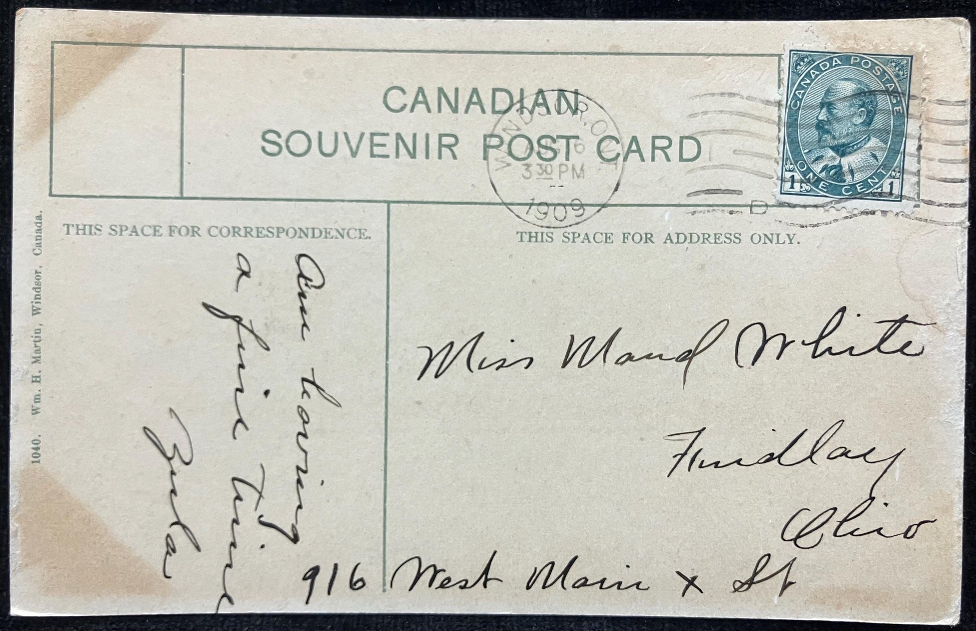 Mailed: Postmark 1909 Ontario Green one cent King Edward VII