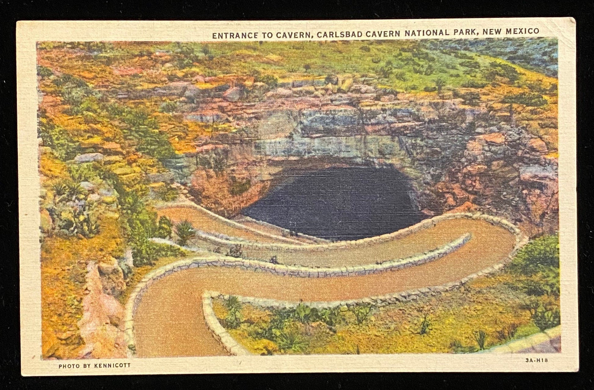Entrance to Cavern, Carlsbad Cavern National Park, New Mexico - 1933 Linen Postcard