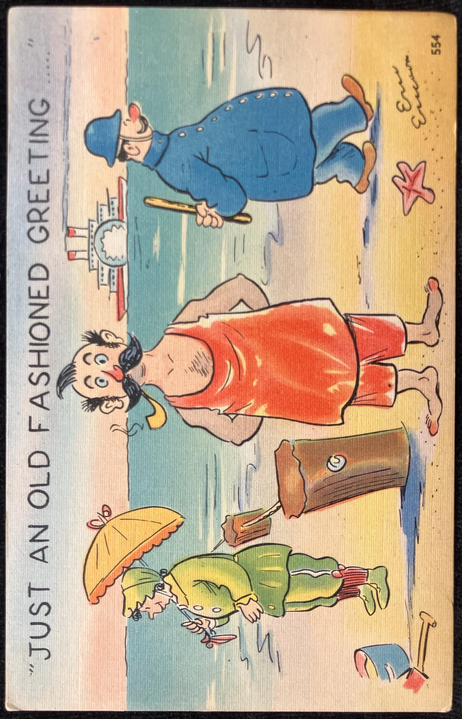 Eric Ericsson - Cartoon Postcard - 1940s-50s - "Just an Old Fashioned Greeting" - Vintage Beach Card
