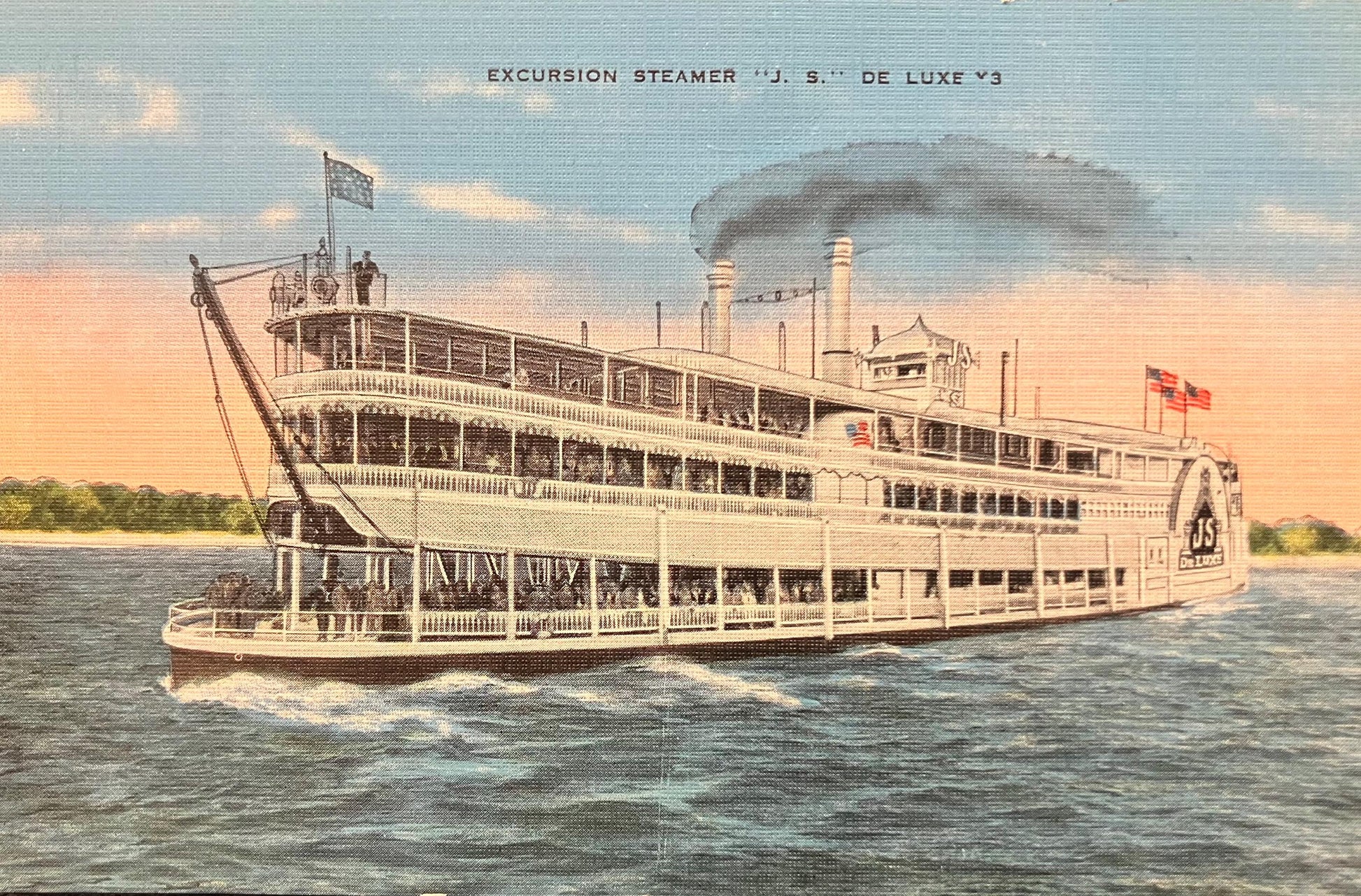 Excursion Steamer - “J. S.” De Luxe 3 - Mississippi River - 1940s Linen Postcard