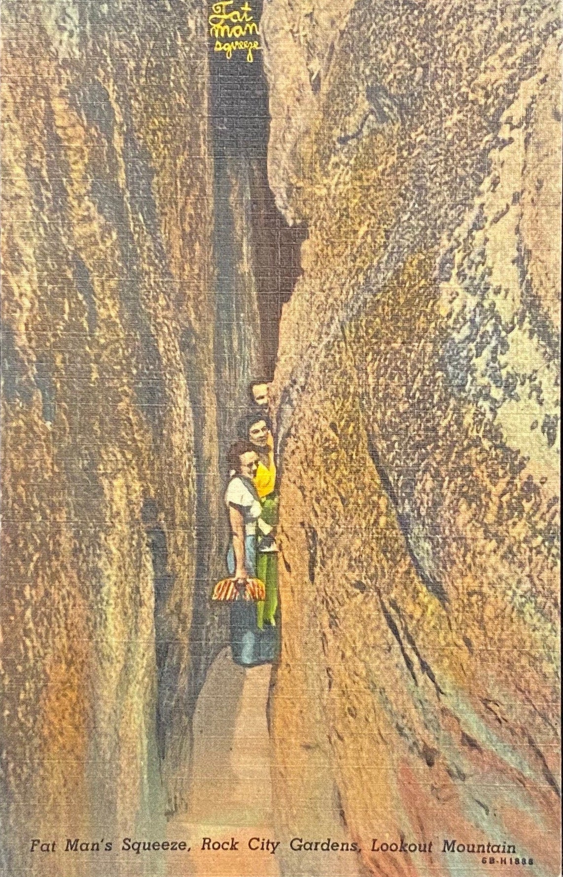 Fat Man's Squeeze - Rock City Gardens - Lookout Mountain, Georgia - 1946 Linen Postcard