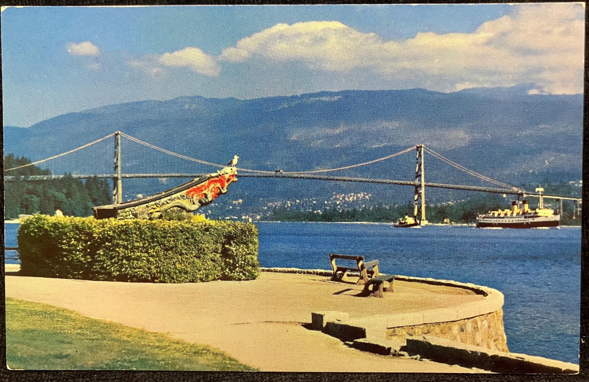 Figure of the Empress of Japan - Lions Gate Bridge - Vancouver, B.C., Canada - Made in Canada - Vintage Bridge Postcard