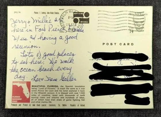 Back: BEAUTIFUL FLORIDA, the Spanish translation being "Land of Flowers," is much the same as when Ponce De Leon and his band explored it back in the fifteenth century. It is blessed with over 1,500 miles of coastline, laced with thousands of swift-moving rivers and streams and hundreds of lakes, all of which have their share of game-fighting fish and other marine life.
