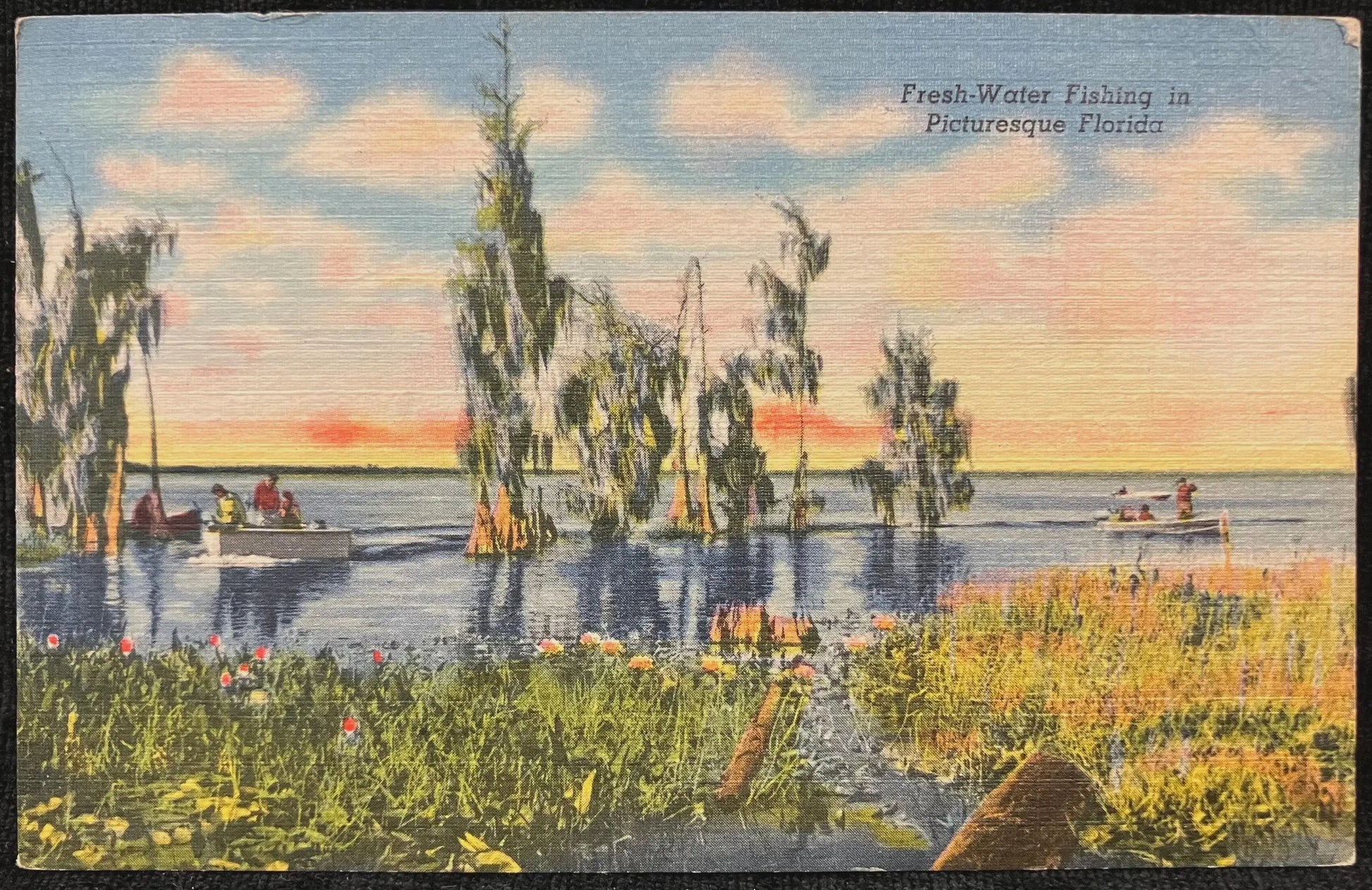 Fresh-Water Fishing in Picturesque Florida - Two Stamps - Vintage Nature Postcard