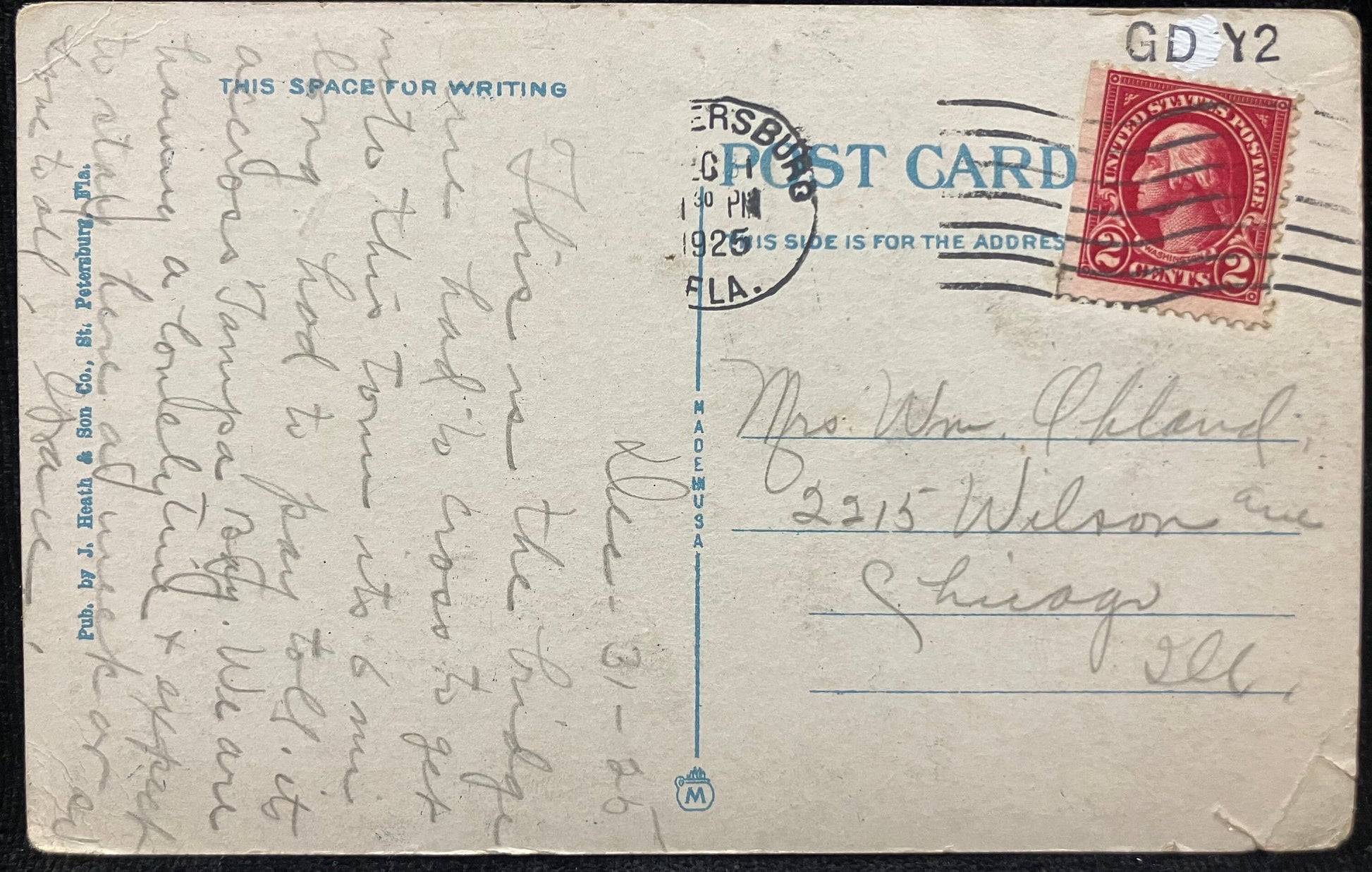 Mailed: Postmark 1925 St. Petersburg red two cent George Washington stamp