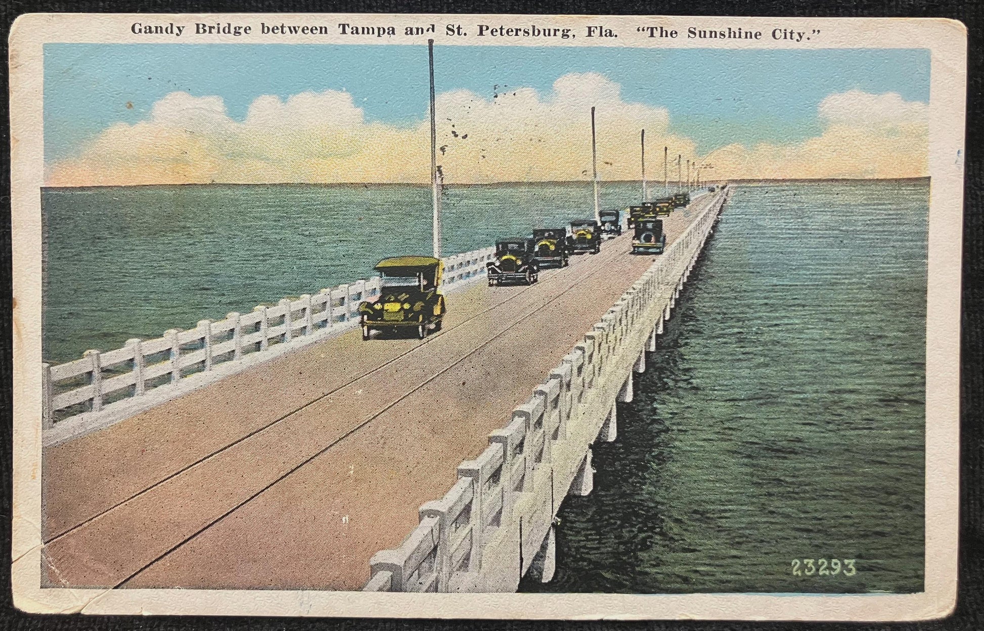Gandy Bridge Between Tampa and St. Petersburg, Florida - “The Sunshine City.” - Vintage 1920s Bridge Postcard