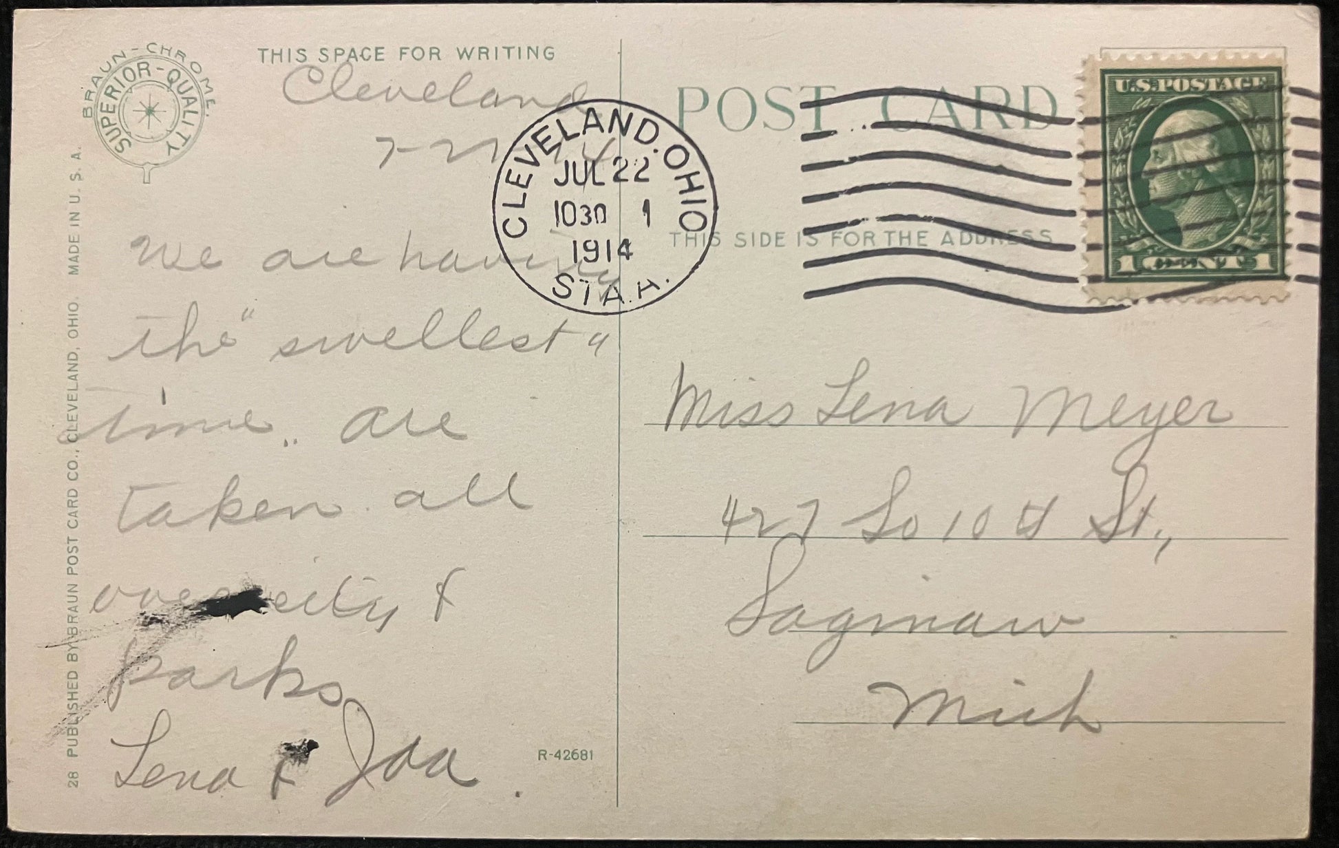 Mailed: Postmark: 1914 with a green one cent George Washington stamp