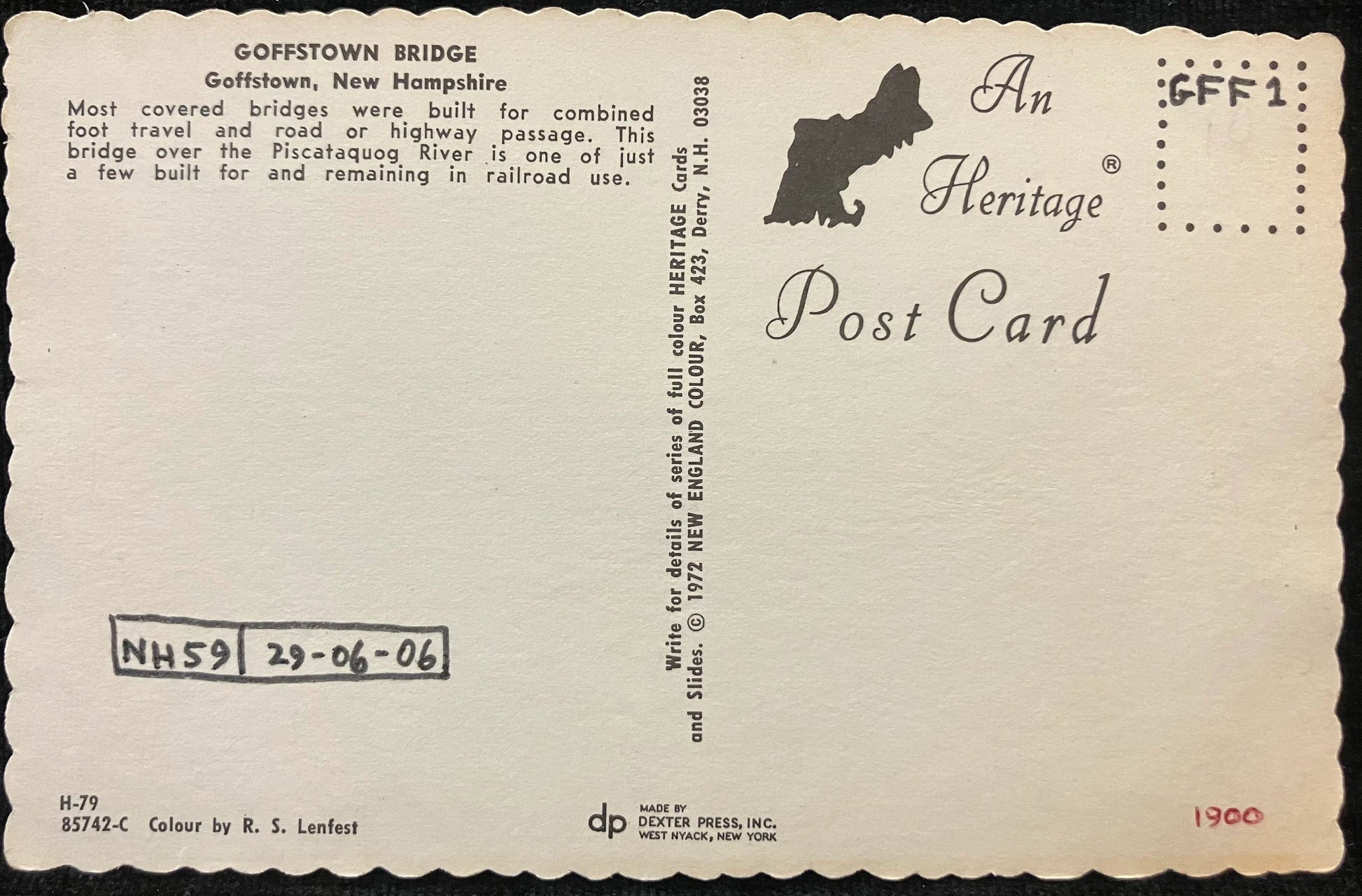 Goffstown Bridge in Goffstown, New Hampshire - Vintage Covered Bridge Postcard