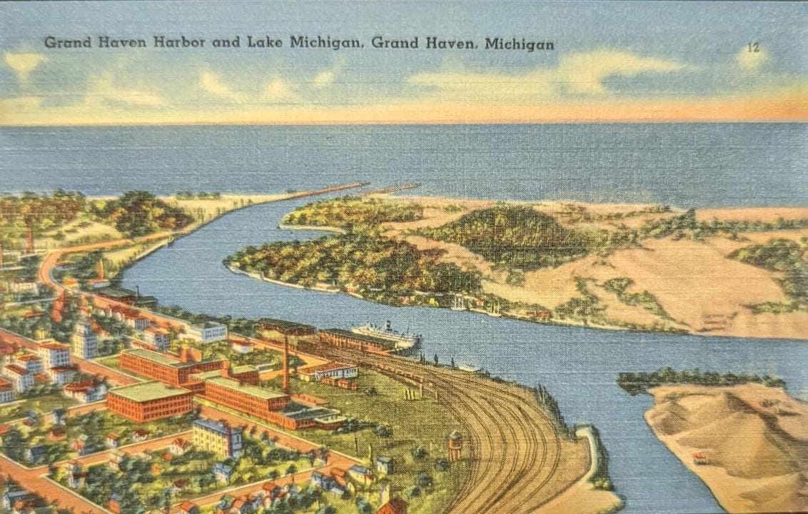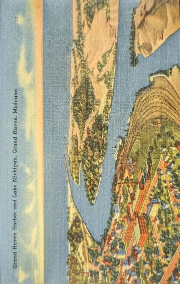 Grand Haven Harbor and Lake Michigan, Grand Haven, Michigan - Linen Postcard