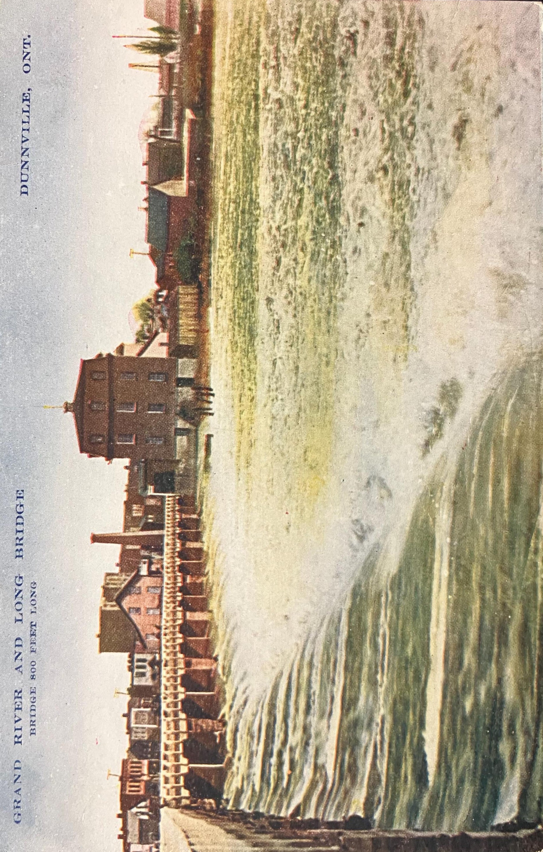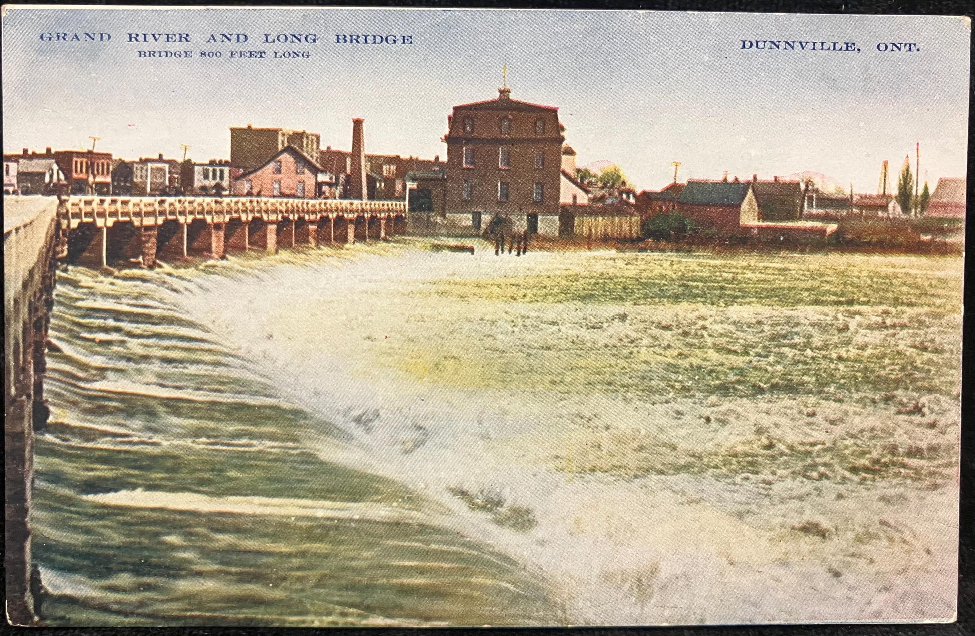 Front: GRAND RIVER AND LONG BRIDGE Bridge 800 Feet Long Dunnville, Ont.