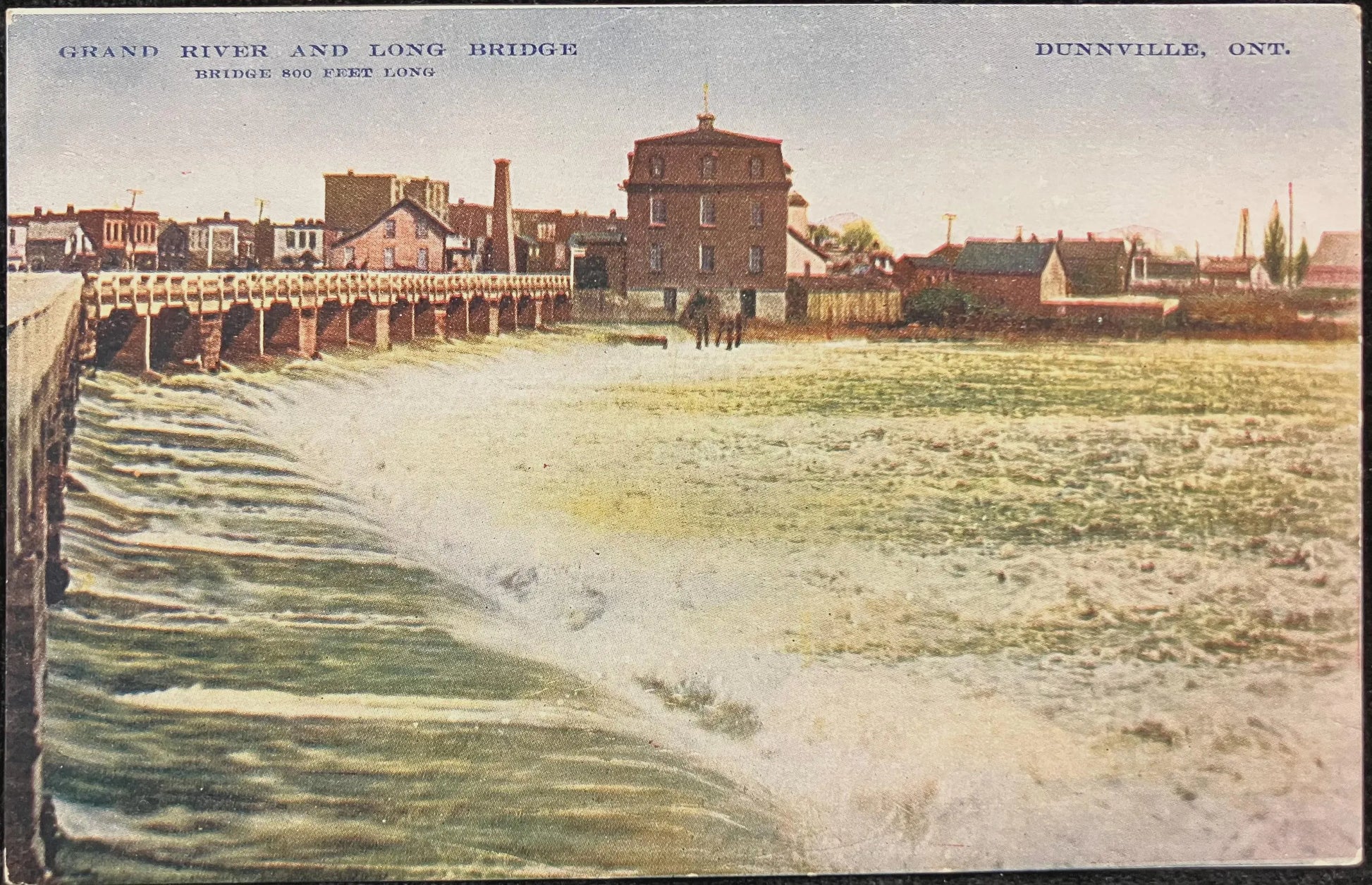 On front: Grand River and Long Bridge Bridge 800 Feet Long - Dunnville, Ont.
