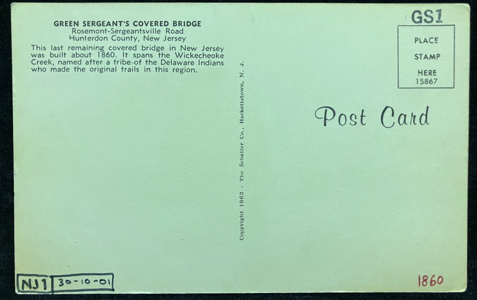 Green Sergeant’s Covered Bridge - Hunterdon County, New Jersey - Last Covered Bridge Remaining in New Jersey - Bridge Postcard