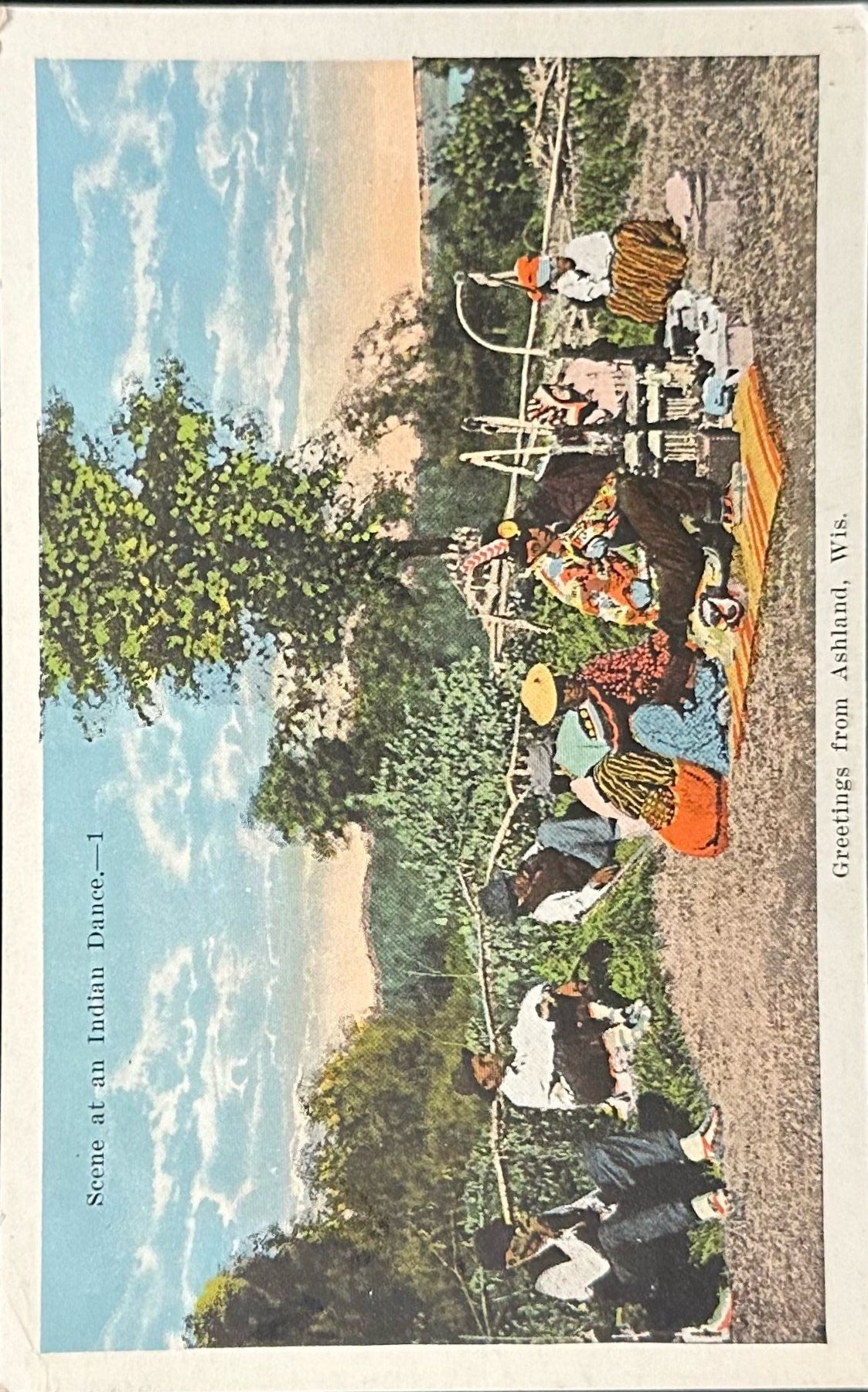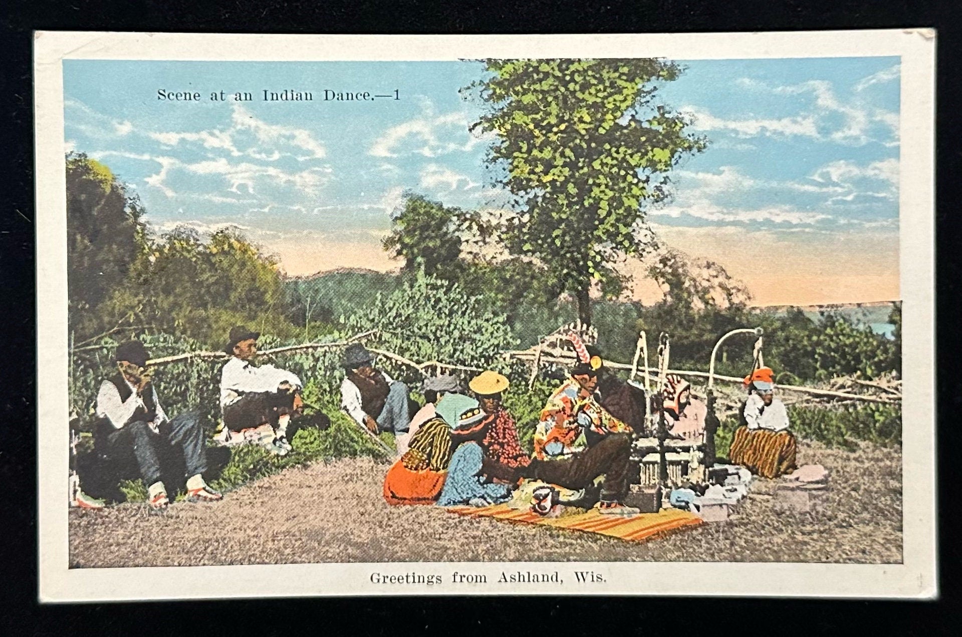 Greetings from Ashland, Wis. - Scene at an Indian Dance - Vintage 1920s Postcard